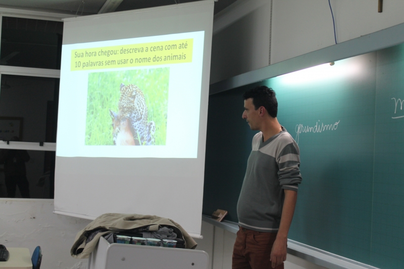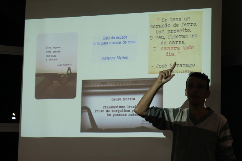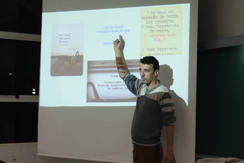 O professor Ney Arboleya realizou uma oficina de escrita criativa para os acadêmicos inscritos. "Nesta oficina nós trabalhos formas de não ser tão óbvio no uso da linguagem, utilizando ferramentas como o eufemismo para se referir a algo ou alguém ou situação. São ferramentas que contribuem para que o texto seja mais interessante e menos óbvio", explica.