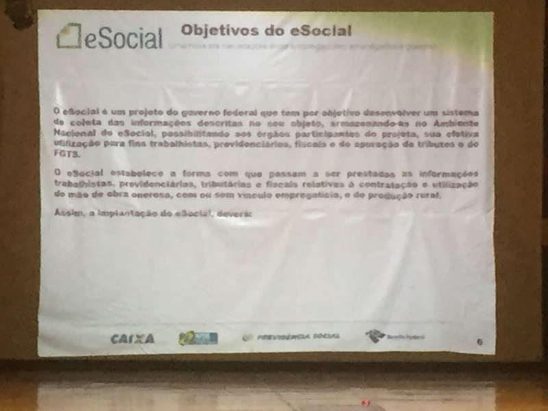 Durante a palestra ele ressaltou sobre a importância dos empresários e profissionais que atuam na área de RH se inteirarem sobre o novo sistema. "São os empresários e seus colaboradores que cumprem ou deixam de cumprir as normas legais. São eles que pagam os tributos e por isto é importante que eles se posicionem sobre o real papel deles nesta nova sistemática, que vai fiscalizar as ações, seja na área de tributação, previdência, legislação, trabalhista em tempo integral. Será os olhos do governo dentro das empresas e por isto precisa ser muito bem compreendido por quem alimenta estas informações", alerta.