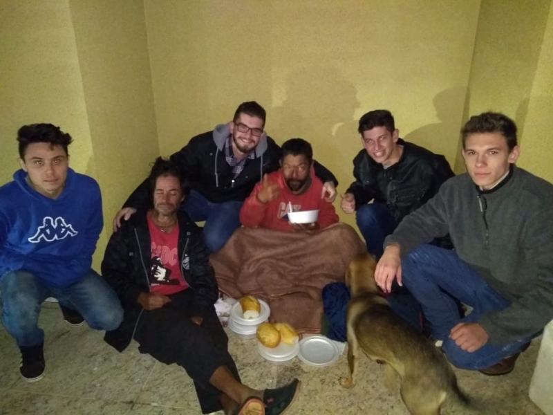 Era para ser apenas mais um trabalho acadêmico, mas o resultado prático surpreendeu muito os alunos Vitor Klaus, Lucas Cavalheiro, Lucas Dias, Luan Koval e Jairo Preussler, do 1º período do curso de Gestão de Agronegócio da FAG Toledo, que receberam a proposta de fazer um projeto de responsabilidade social, na disciplina de Ética, ministrada pela professora Maria Rita Pozzebon. Os estudantes decidiram fazer uma abordagem aos moradores de rua de Toledo, servindo uma sopa e levando donativos para eles. "Logo percebemos que seria uma experiência única para nós também, pois teríamos que fazer esta abordagem, conversar com eles e ali descobrimos histórias de vida surpreendentes e mais, que eles são pessoas como nós que passaram por tragédias que os levaram para a situação de rua", explica o acadêmico Vitor Klaus.
