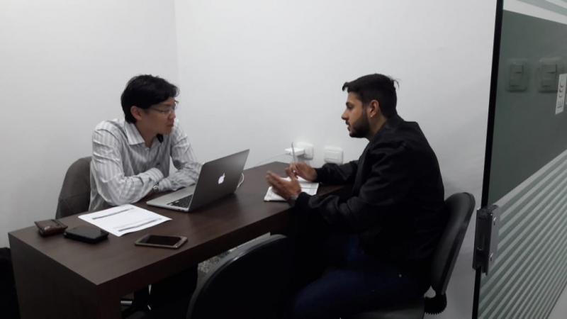Acadêmicos do Centro FAG, selecionados para participarem dos encontros do Startup Garage, se reuniram na segunda (11) e terça (12) com o consultor do Sebrae, Diogo Kaoru Takayama, que foi convidado para falar e trabalhar sobre identificação de problemas e soluções para os clientes das Startups. "Os encontros foram focados muito em eles aprenderem a conhecer os clientes, como segmentar o mesmo, identificar o público-alvo, os problemas... e tentar achar uma forma de solucionar tudo isso. Trabalhei a empatia, focando então no cliente", explica.