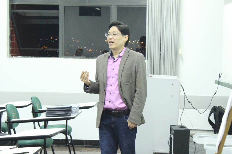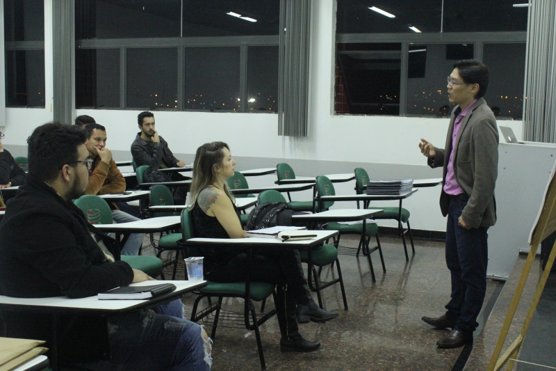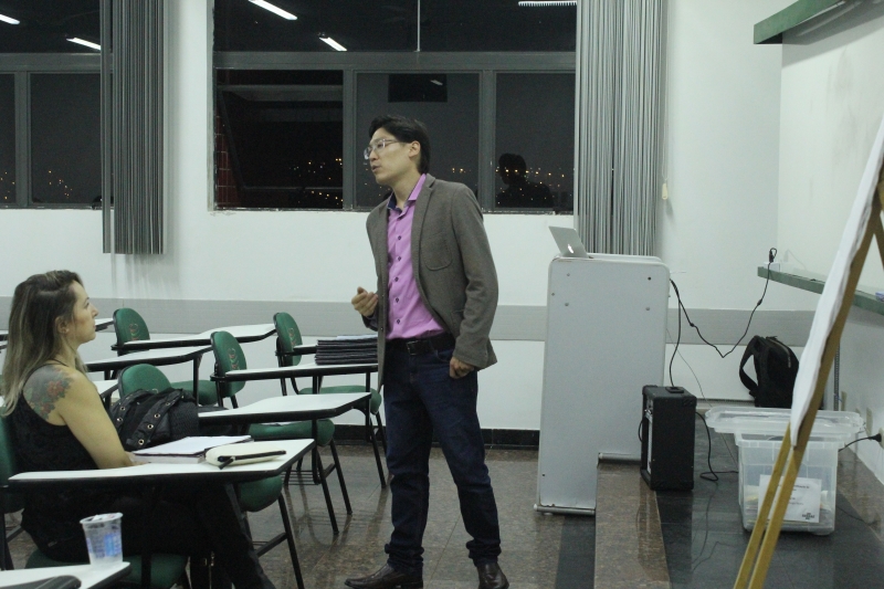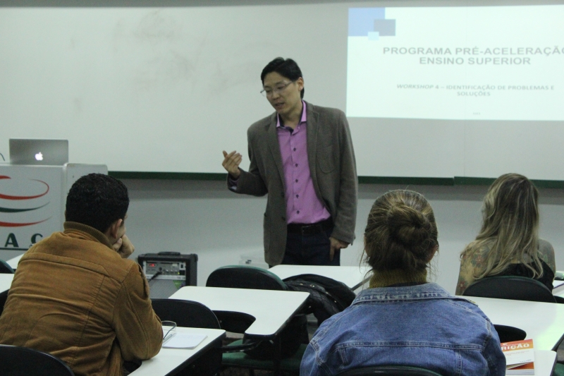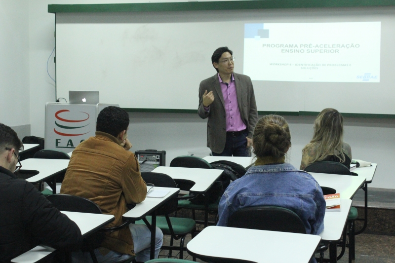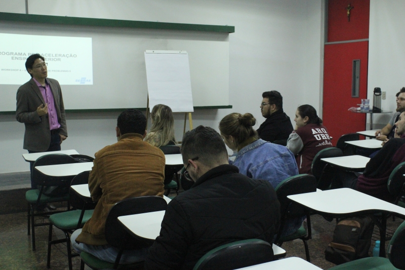 O consultor do Sebrae, Diogo Kaoru Takayama, foi o convidado para trabalhar com os alunos em diferentes situações com clientes das Startups