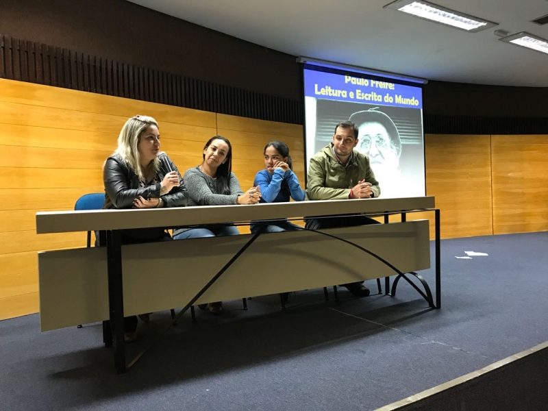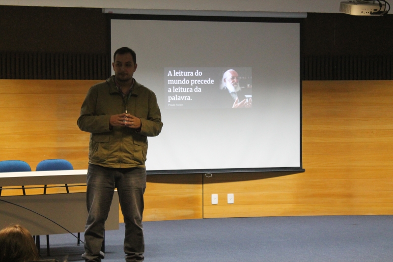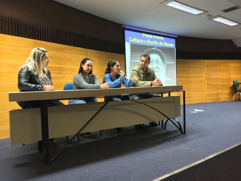 A palestra de abertura foi com o professor Leandro Crestani que falou sobre as três obras trabalhadas com os estudantes. "Nós selecionamos três títulos para basear os trabalhos: A importância do ato de ler, Pedagogia do oprimido e Pedagogia da Autonomia. São trabalhos importantes do Paulo Freire que é patrono da educação brasileira", explica. O professore ressaltou sobre a importância história do autor para a educação no país. "É necessário entender que o nosso autor viveu no contexto da ditadura militar, foi perseguido pelo regime da época e mandado para o Chile como exilado e lá, tomando distância ele começou a compreender melhor o país. Freire tornou-se uma inspiração para várias gerações e neste momento conturbado em que vivemos no país é necessário voltar e ler e discutir suas obras que é leitura obrigatória para quem é da área da educação" relata.
