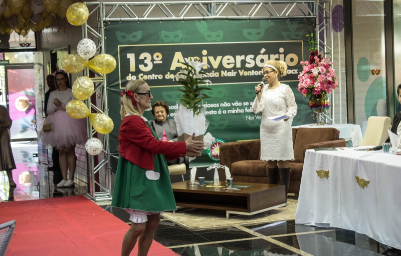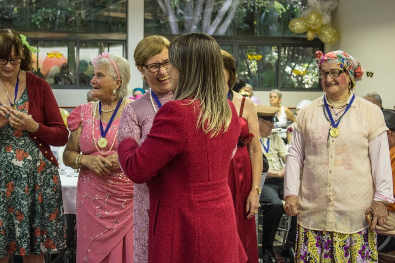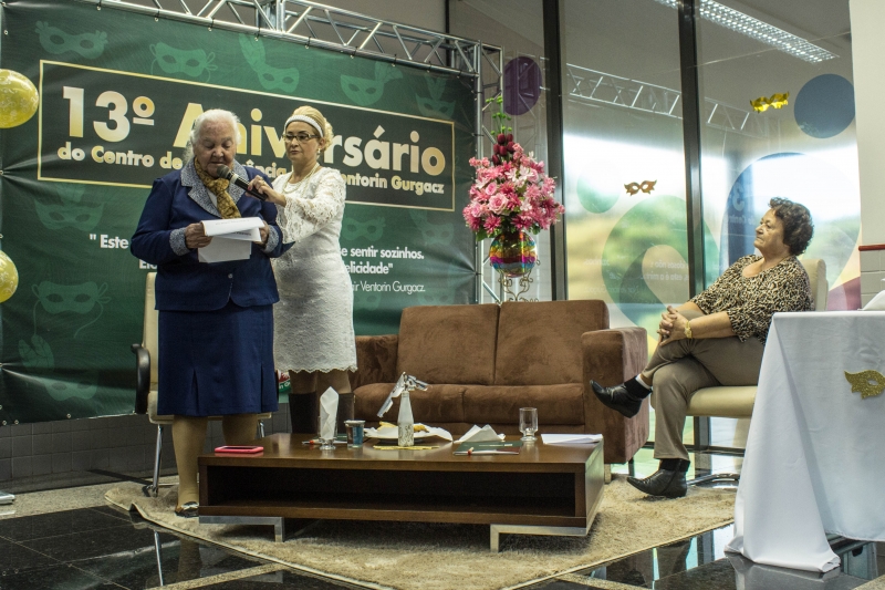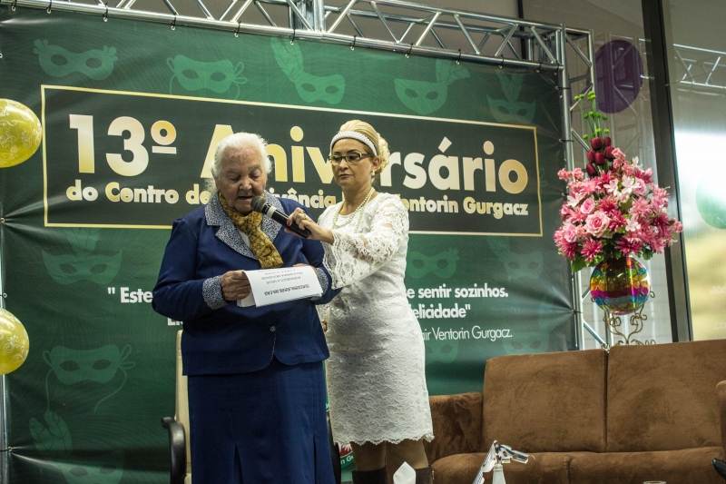 Dona Nair Ventorin Gurgacz, que dá nome ao Projeto, marcou presença no evento. "Em casa, muitas vezes, eles se sentem sozinhos, abandonados, a rotina da família está mais corrida. Aqui, eles encontram pessoas com a mesma faixa etária e se sentem acolhidos, participando das atividades com alegria", ressalta a Presidente da Fundação Assis Gurgacz.