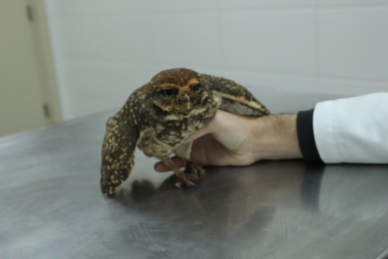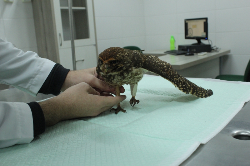 Na noite de segunda feira (11), um paciente diferente deu entrada no Hospital Veterinário do Centro Universitário FAG. Vítima de atropelamento, uma coruja-buraqueira foi socorrida pela pessoa que a atropelou e encaminhada para o atendimento com os profissionais que estavam de plantão.