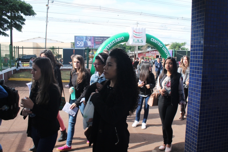 Pouco antes das 13h, horário previsto para a abertura dos portões, centenas de vestibulandos se aglomeraram na entrada do estacionamento da FAG Toledo. Assim que o acesso da Avenida Ministro Cirne Lima foi liberado os quase 600 candidatos que optaram por fazer as provas do Vestibular de Inverno do Centro FAG em Toledo se encaminharam para o Bloco II do campus onde foram distribuídos em nove salas do térreo. Os candidatos foram recebidos por colaboradores da área administrativa, apoio e professores da instituição, que realizam o trabalho de orientação e fiscalização das salas.