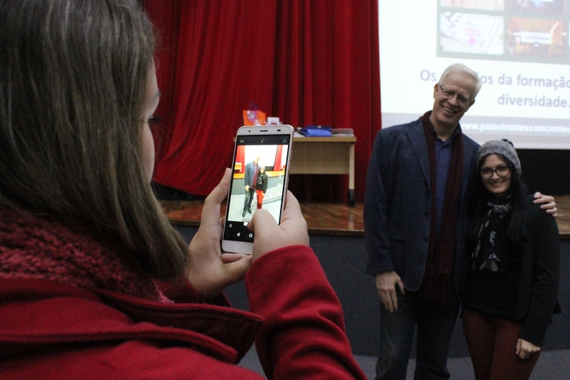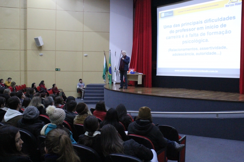 Marcos Meier é palestrante nacional e internacional a respeito de relacionamento interpessoal nas empresas, educação de filhos, formação de professores e psicologia. Possui uma coluna na RPC TV, afiliada da Rede Globo no Paraná, na qual discorre sobre educação e comportamento. Ele falou com o público presente sobre "Os desafios da formação docente na diversidade". "Um dos principais problemas da educação, é a qualidade da aula em sim, isso significa que o professor está tendo uma formação não muito boa, principalmente na área da psicologia das relações. A universidade não tem uma disciplina que trabalhe a psicologia das relações, e outro problema é a forma de como o aluno chega na universidade ou na escola. O aluno está muito dependente do professor, ele espera que o professor faça tudo, só espera, mas ele não vê como, por exemplo, usar os conhecimentos e discutir sobre. Então é preciso mudar isso, o aluno tem que entender que ele é o responsável pela aprendizagem e precisa ser autônomo", expõe.