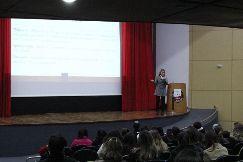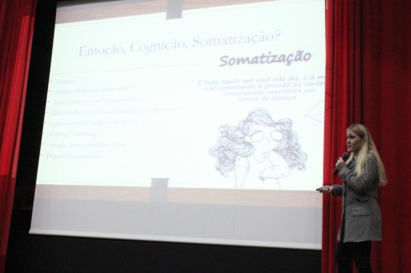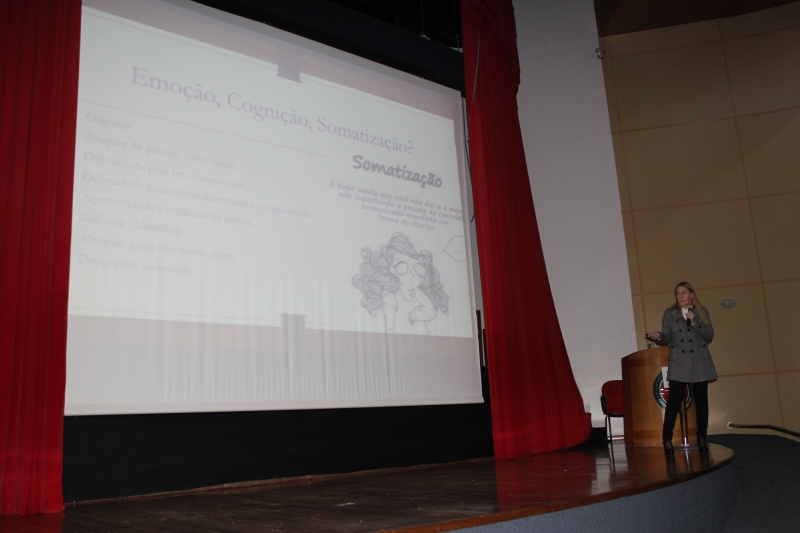Ainda no mesmo dia, pela manhã, os estudantes participaram, da palestra internacional com a psicóloga, Daisy Blaich, que veio do Paraguai para falar sobre "A influência da área emocional do aprendizado". "Tentei fazer algumas integrações em relação a alguns tópicos relacionados ao emocional das pessoas, como essa área influencia na capacidade de aprendizagem das crianças e adultos, e como isso é visto no dia a dia. Mostrei como tudo isso envolve então no aprendizado. Foi passado um conhecimento geral, mas deu uma ideia de como a emoção funciona em todas as áreas, e de que forma os testes podem auxiliar nas identificações das ações emocionais das pessoas, os futuros profissionais podem trabalhar com as diversas ferramentas disponíveis", revela.