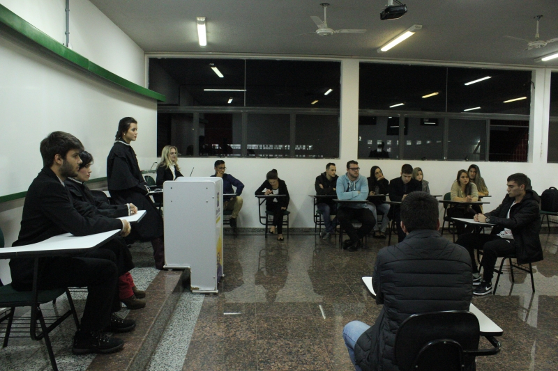 Acadêmicos do curso de Direito do Centro Universitário FAG, campus Cascavel, participaram de uma de um Júri Simulado. A atividade faz parte da disciplina de Leitura e Produção Textos, ministrada pela professora, Adriana Boeira. "A atividade teve o intuito de propiciar ao acadêmico a oportunidade de trabalhar a oratória e argumentação, tendo uma breve noção das situações jurídicas que envolvem a profissão. Com o apoio do professor de Direito Penal, para que a atividade pudesse ficar mais próxima ao cenário jurídico, os alunos desenvolveram suas teses e argumentos para que pudessem obter êxito ao final do julgamento", explica.