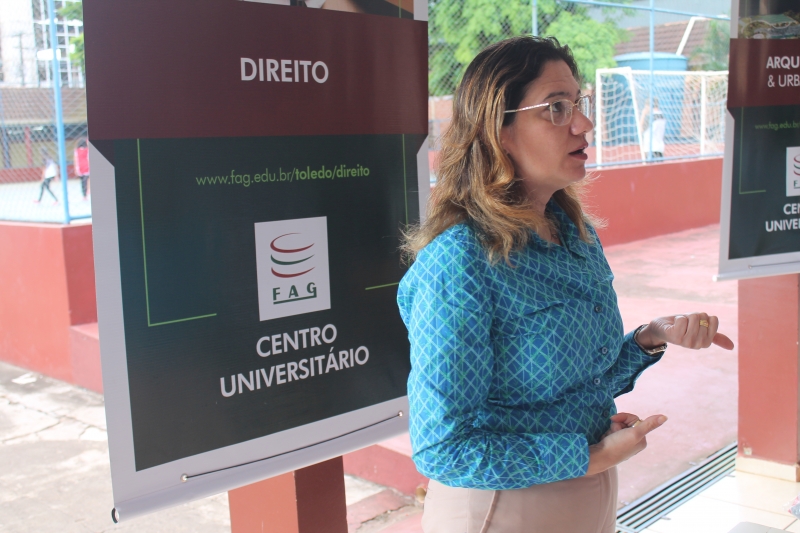 Os cursos de Publicidade e Propaganda e Direito da FAG Toledo iniciaram esta semana a primeira etapa de uma campanha para abordar o problema do bullyng com estudantes do Colégio Estadual Dario Veloso. Na etapa inicial, a coordenadora do curso de Direito Camila Milazzotto Ricci realizou uma palestra com os estudantes do 7º ano. "Nós conversamos com os alunos sobre este problema que está dentro das escolas e que é tão prejudicial para a vítima. Muitos possuem o hábito de fazer brincadeiras sem ter noção do quão prejudicial isto pode ser. Logo na primeira turma os estudantes apontaram que é uma prática muito comum no ambiente escolar", relata.