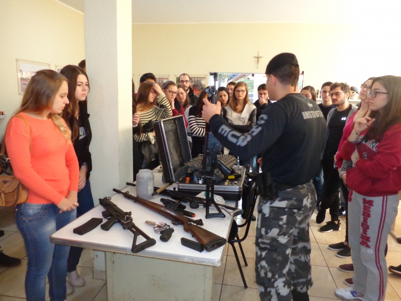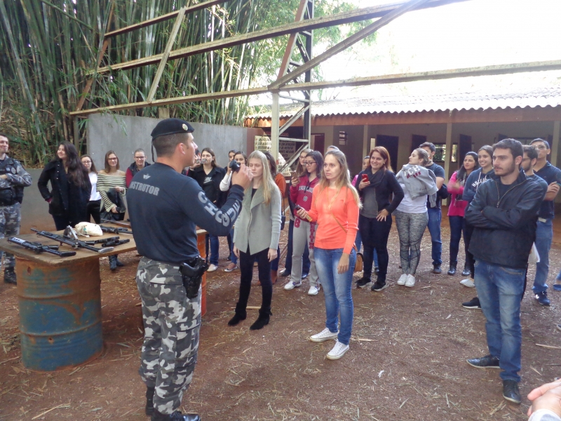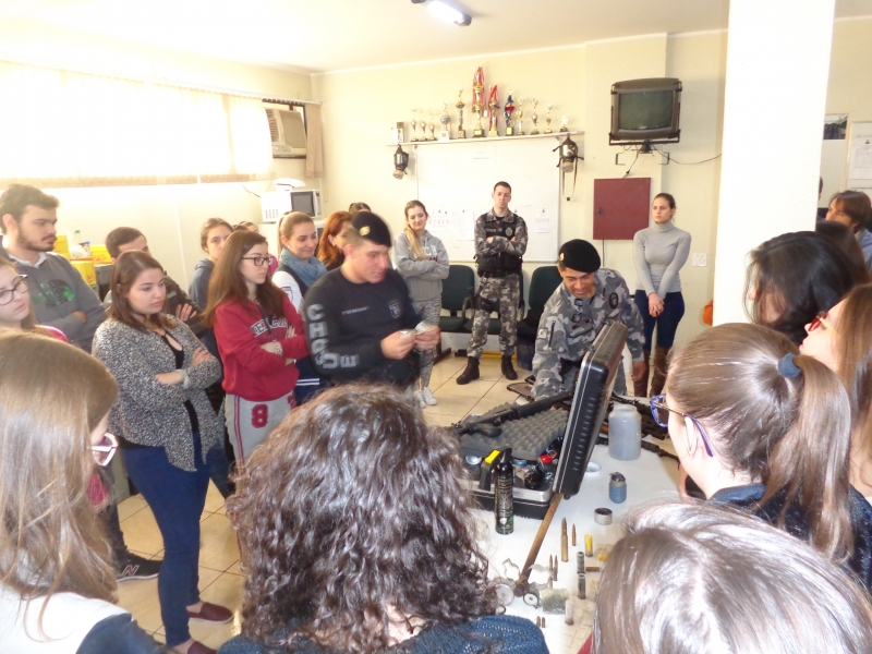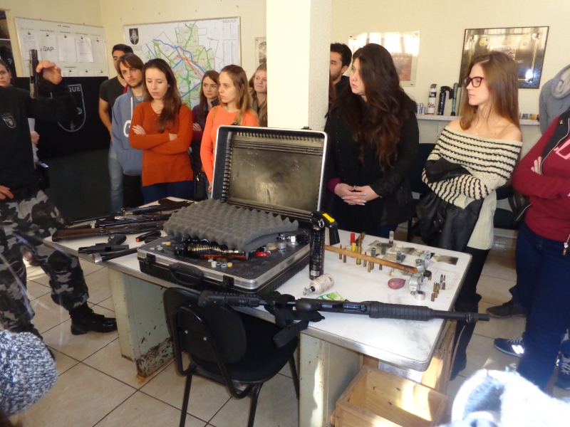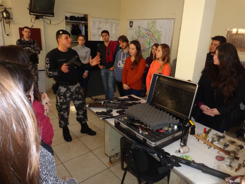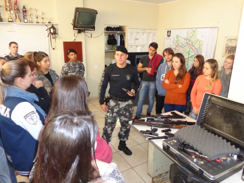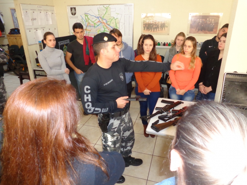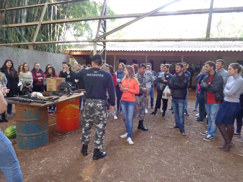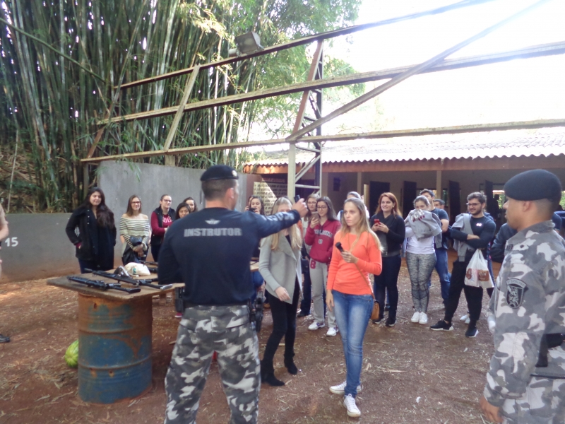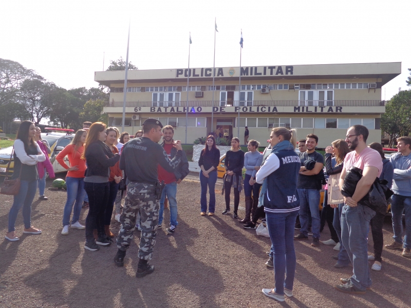 Os alunos do 8º período do curso de Medicina do Centro Universitário FAG participaram de uma atividade no 6º Batalhão da Polícia Militar. Na disciplina de Medicina Legal, do professor Sérgio Nascimento Pereira, eles tiveram uma instrução sobre armas. No decorrer do semestre, os acadêmicos conheceram, na teoria, as lesões corporais e os diversos tipos de instrumentos causadores de lesões. Assim como as aulas no Instituto Médico Legal, a instrução os inseriu na prática.