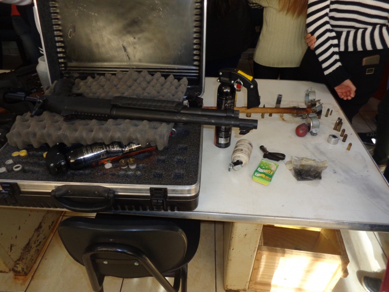 Eles foram orientados sobre as armas menos letais que são utilizadas pela Polícia Militar e também sobre as armas de fogo. "O médico, durante o atendimento de urgência/emergência, muitas vezes, se depara com casos de ferimentos por arma e muitos deles não conhecem como funciona este tipo de equipamento. É imprescindível que o médico tenha conhecimento teórico prático a respeito destes instrumentos, pois na vida real, não é como vemos no cinema e na televisão", expõe o professor da disciplina.