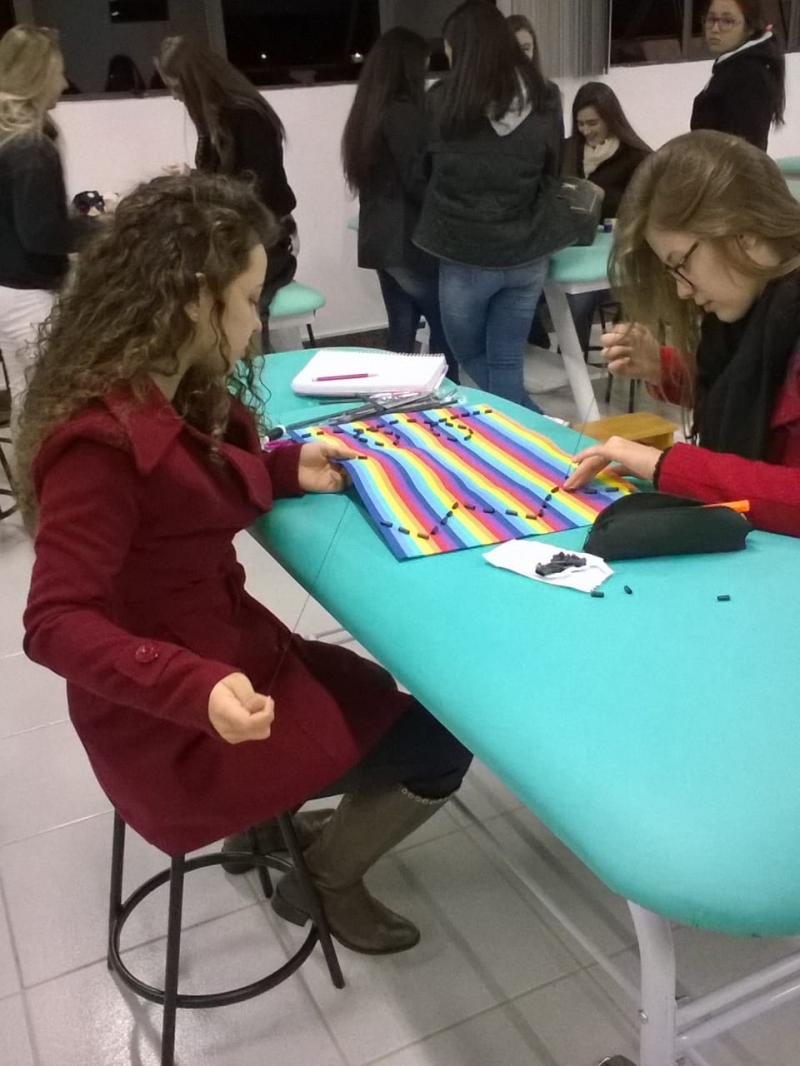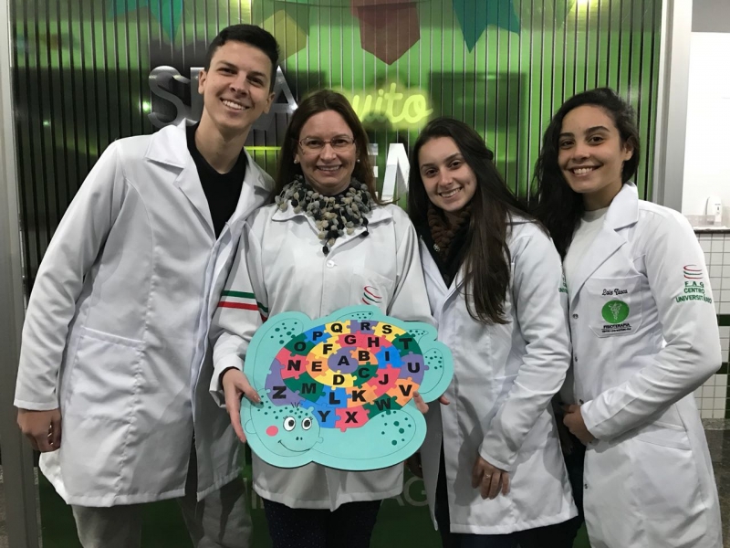 Na disciplina de Motricidade Humana, que integra o 1º período do curso de Fisioterapia do Centro Universitário FAG, os objetivos são compreender o desenvolvimento motor, a motricidade fina e ampla, lateralidade e noções de espaço e tempo. A professora da matéria, Tatiana Filippin, pensou em uma forma para que os alunos pudessem absorver o conteúdo, trabalhando de forma prática, além de arrancar sorrisos de pacientes das Clínicas FAG.