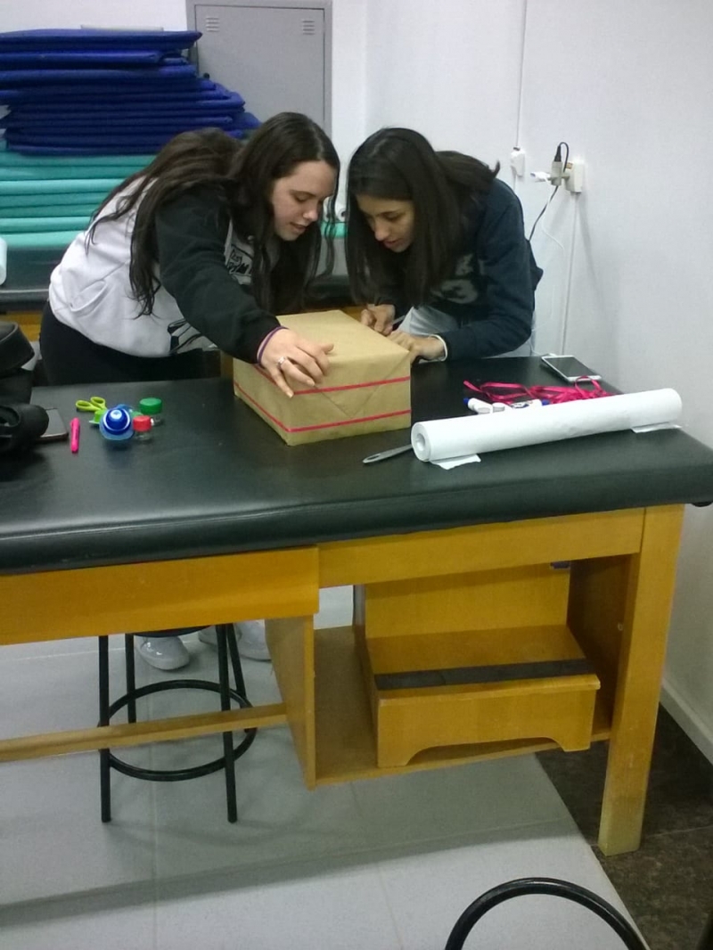 A proposta foi a seguinte: como parte da avaliação da disciplina, os alunos tiveram que desenvolver um brinquedo que pudesse treinar o paciente para aprimorar as habilidades aprendidas na teoria. Eles poderiam, no máximo, comprar algumas peças para compor o instrumento, porém, a fabricação final deveria ser própria. O resultado final foram objetos como: quebra-cabeça, relógio de montar, twister, cesta de basquete que flutua na piscina. A professora, então, observou os pacientes em tratamentos nas Clínicas que poderiam se beneficiar com os brinquedos e os presenteou. Foram cerca de 20 peças.