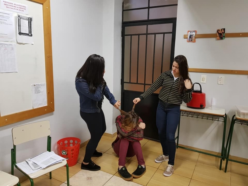 O curso de Direito da FAG Toledo em parceria com o Centro Judiciário de Solução de Conflitos e Cidadania (CEJUSC) da Comarca de Toledo realizou uma capacitação com os estudantes do curso de Magistério do Colégio Estadual Castelo Branco. O tema do módulo foi "Mediação de Conflitos Escolares", ministrado pela professora do colegiado, Elisa Mara da Silva e pela coordenadora de Direito Camila Milazzotto Ricci. "No nosso módulo discutimos com eles sobre indisciplina, violência escolar e o bullying e também estabelecemos conceitos sobre uma comunicação positiva em sala de aula e sobre os fundamentos da mediação nos conflitos escolares", relata Camila. Ela ressalta a importância da FAG Toledo estar inserida nos contextos sociais que demandam atenção. "A lógica da nossa metodologia é expor os conceitos e promover discussão sobre conflitos e mediação para que os alunos reflitam sobre os benefícios da solução pacífica de conflitos e quando estiverem exercendo a função de professores, que tornem esta prática uma realidade concreta. As escolas são os ambientes mais propícios e promissores para florescer uma cultura de PAZ. Por isso, elas se beneficiam desses conhecimentos sobre técnicas de mediação e podem adapta-los as suas necessidades. O Curso de Direito da FAG se sente honrado em propiciar isso", ressalta.