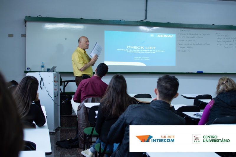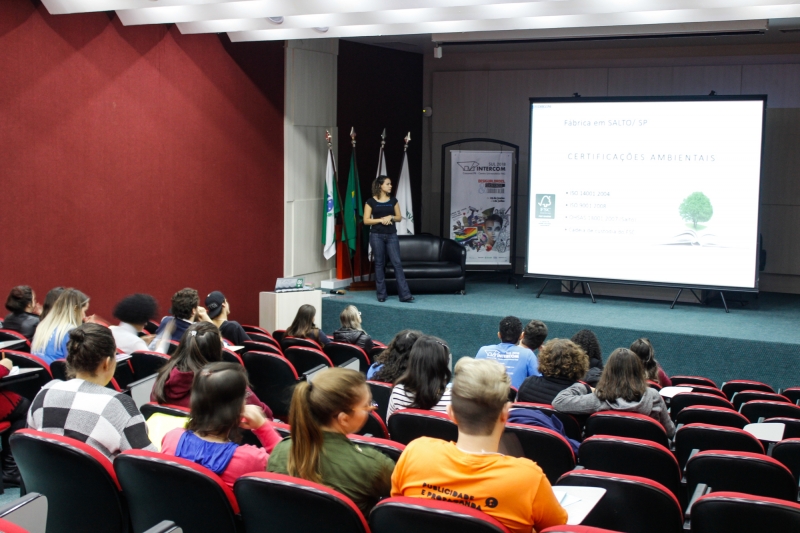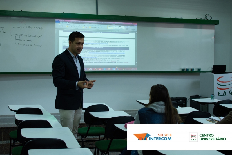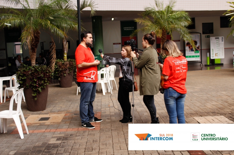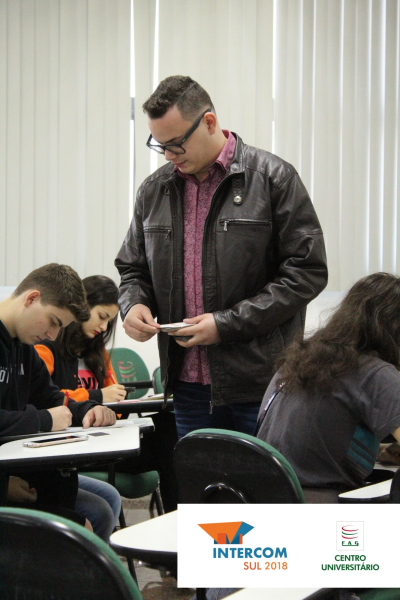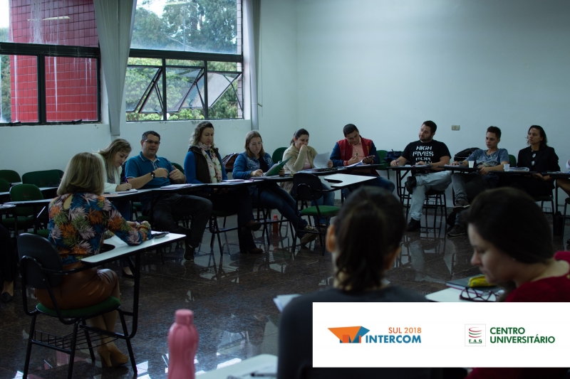 Participantes da Intercom Sul (Sociedade Brasileira de Estudos Interdisciplinares da Comunicação), compareceram, neste sábado (30), no campus do Centro FAG, ao segundo dia do evento que contou com o Intercom Jr, oficinas e Mesa Temática.