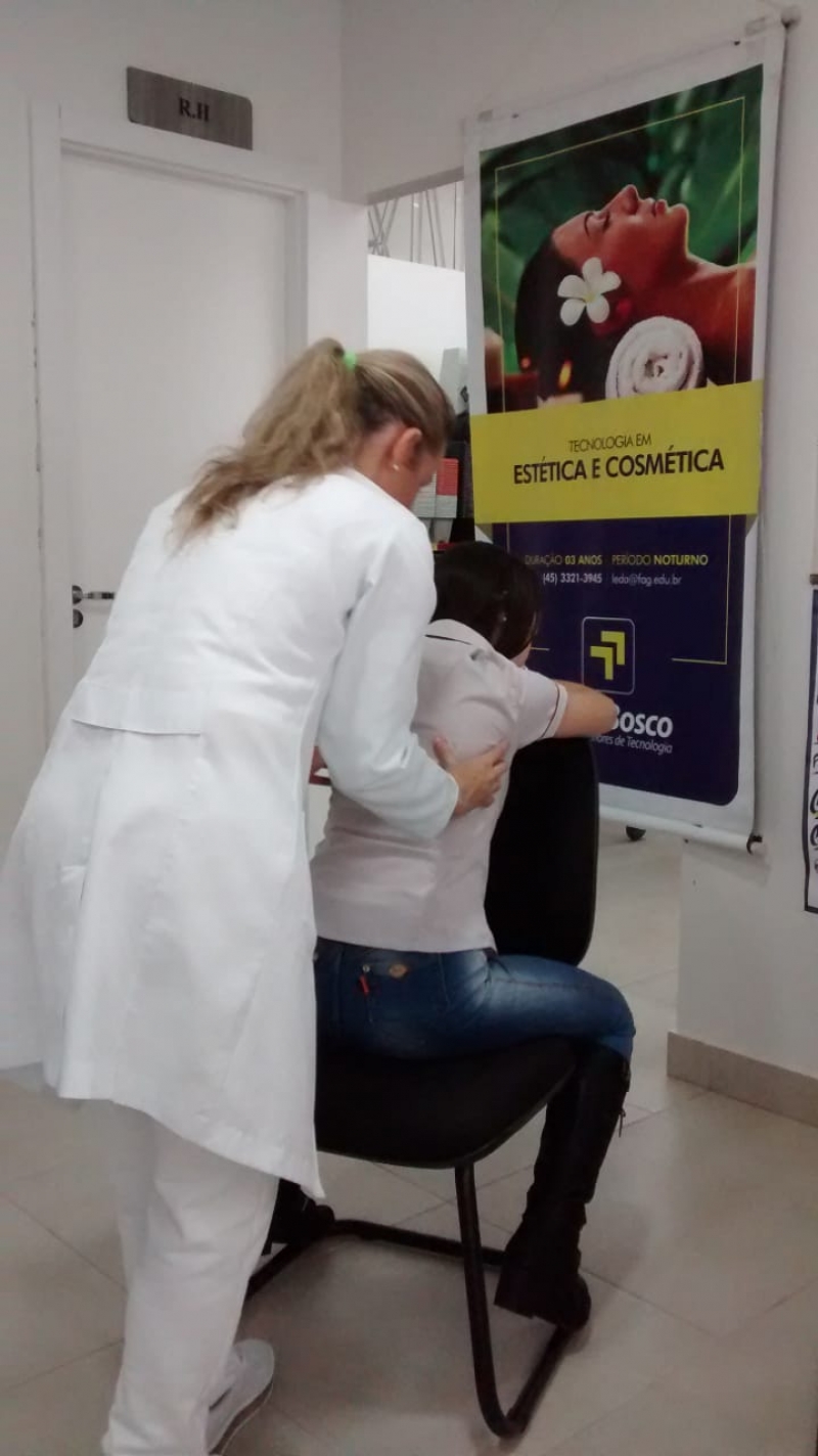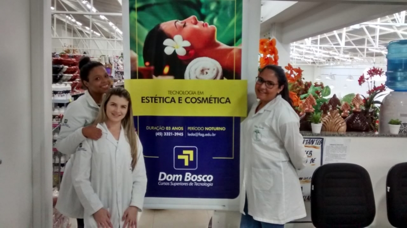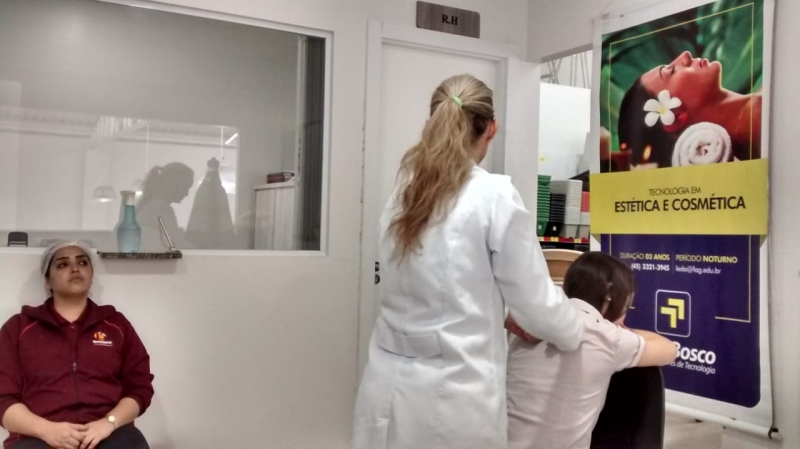 As alunas do 6º período do curso de Estética e Cosmética da Faculdade Dom Bosco, acompanhadas pela docente Vanessa Hamud, realizaram atendimentos em Estética aos colaboradores de uma empresa de Cascavel. As acadêmicas proporcionaram momentos de beleza e relaxamento aos colaboradores.