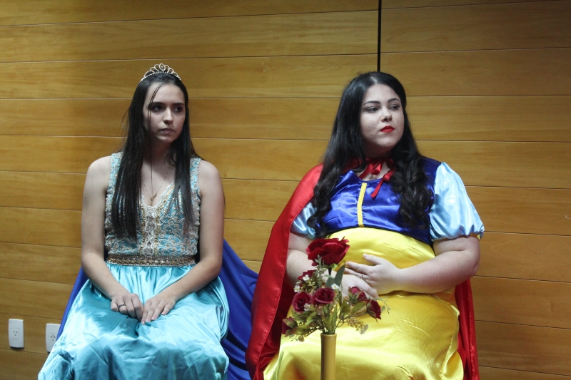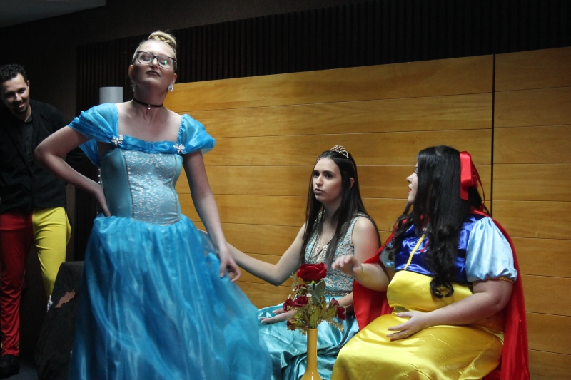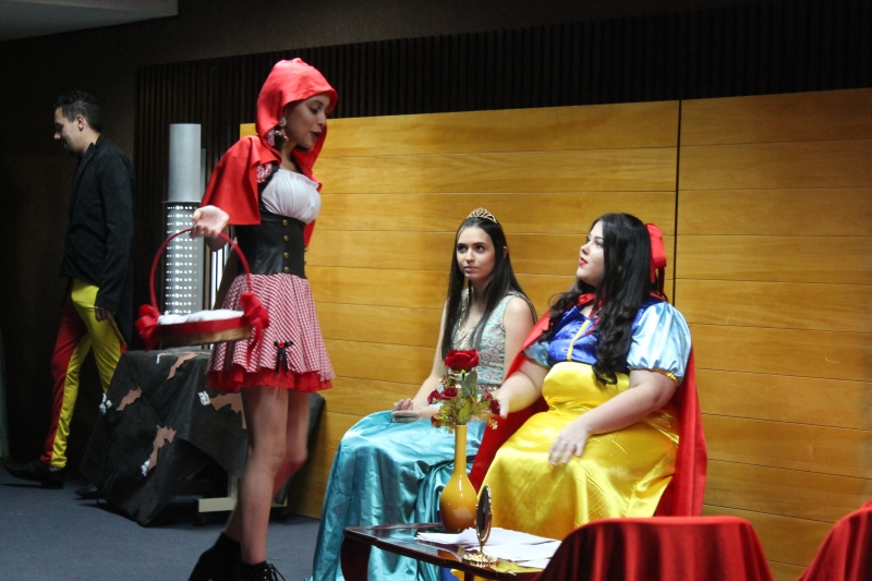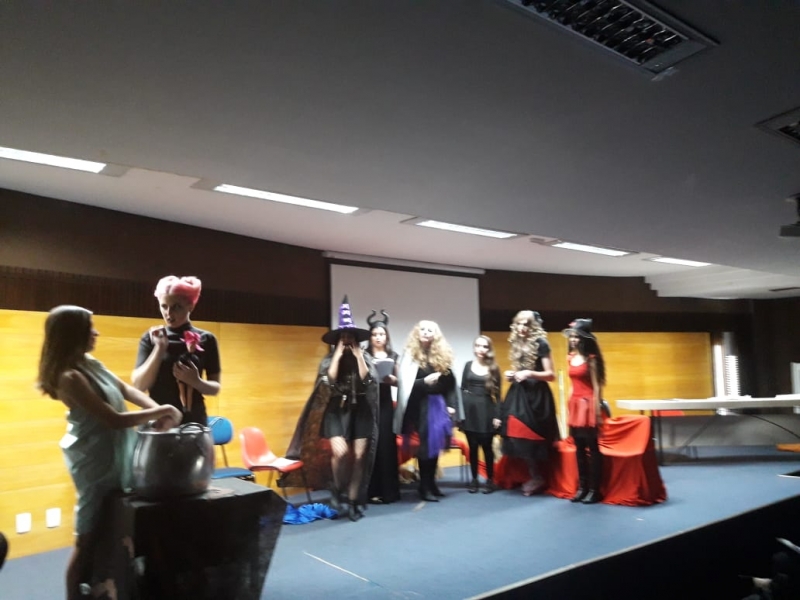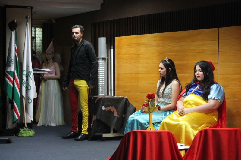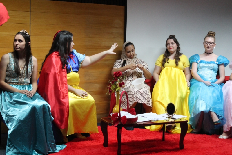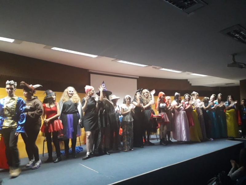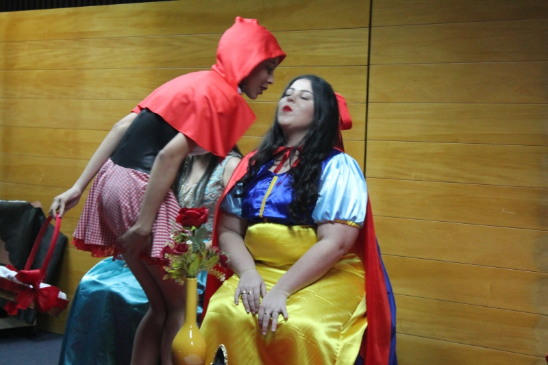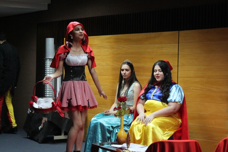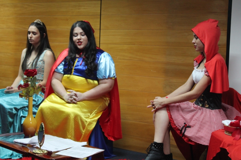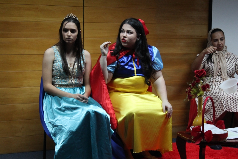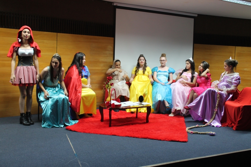 Um clássico da literatura infanto-juvenil virou peça de teatro nas mãos dos acadêmicos do curso de Letras Libras da FAG Toledo. Os acadêmicos do 3º período trabalharam com o livro "O Fantástico Mistério de Feiurinha", obra lançada em 1986 pelo escritor brasileiro Pedro Bandeira. A história foi transformada em peça teatral nas mãos dos estudantes que produziram roupas, cenário, trilhas e realizaram muitos ensaios até o dia da apresentação, realizada no auditório da instituição. "Nós tivemos muito trabalho na preparação, incluímos alguns personagens, ensaiamos muito, mas valeu a pena", comenta a aluna Maria Eduarda de Souza, uma das princesas da história que promove o reencontro entre as princesas dos contos de fada, incluindo a Cinderela, Branca de Neve, Chapeuzinho Vermelho, Rapunzel, Bela Adormecida, Bela Fera e Rosaflor, todas em busca de discutir e investigar o desaparecimento da princesa Feiurinha. "É uma atividade muito interessante, pois faz com que os acadêmicos conheçam a obra e proporciona uma vivência através do teatro, com a incorporação de personagens. O texto reúne muitas qualidades, pois problematiza os contos de fada sem tirar o encantamento destas histórias", comenta a coordenadora do curso, Janice Salvador.
