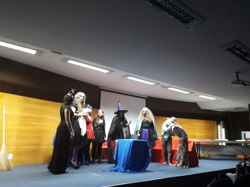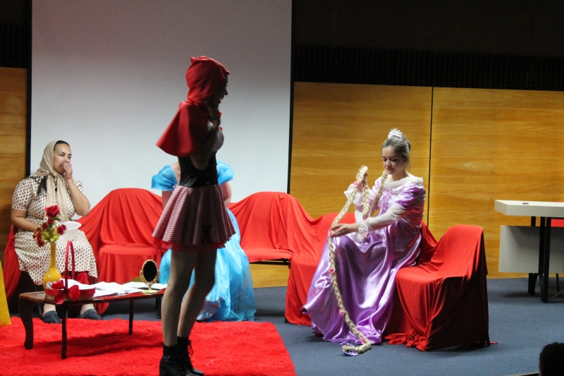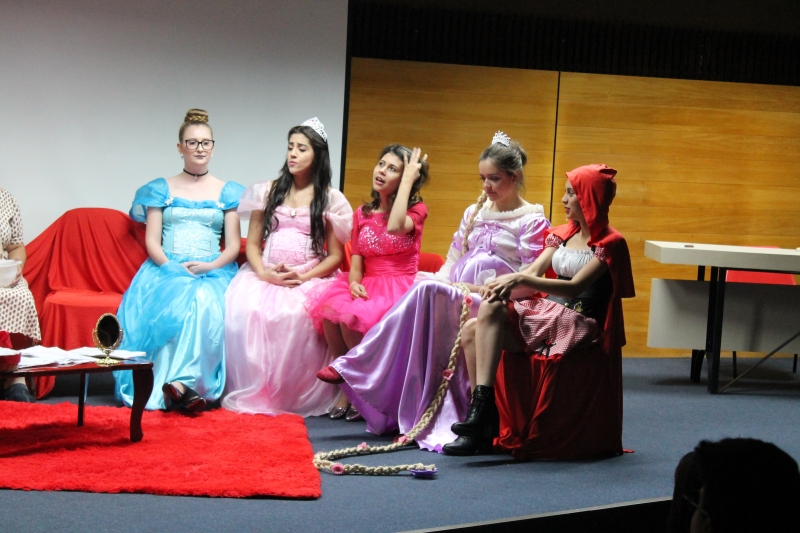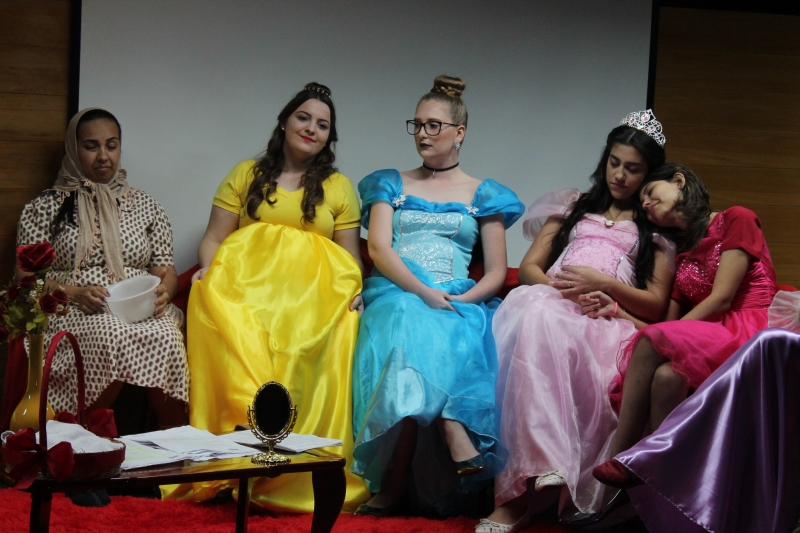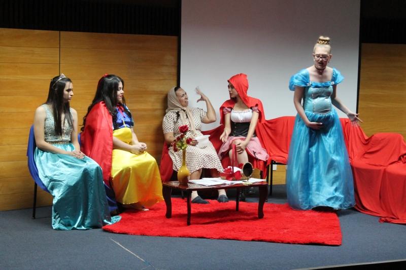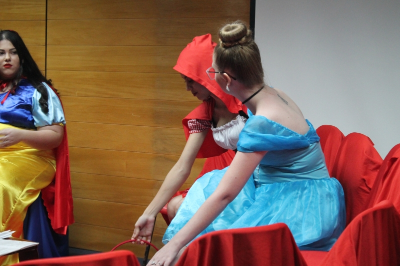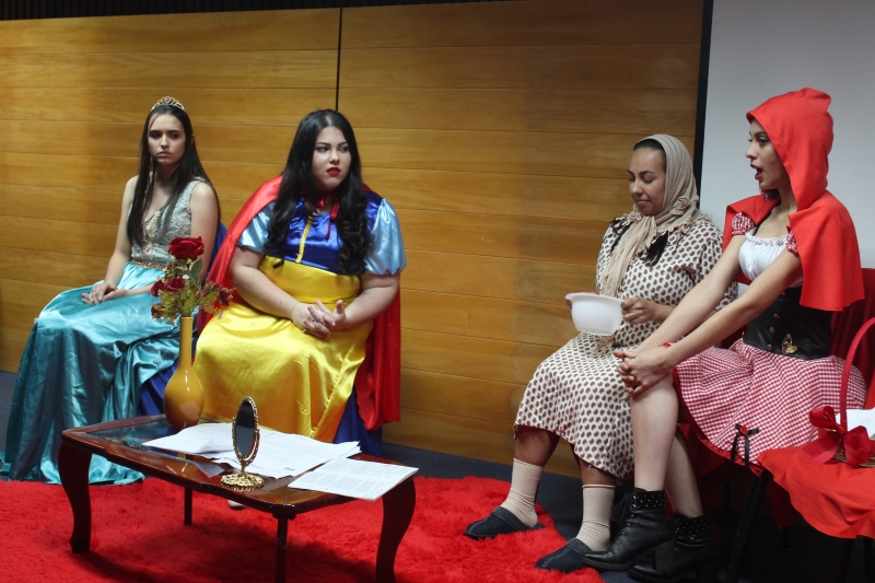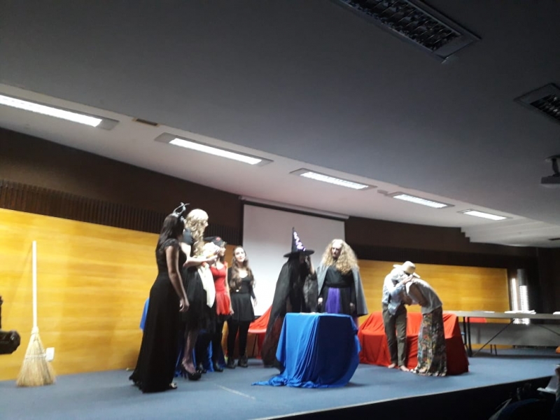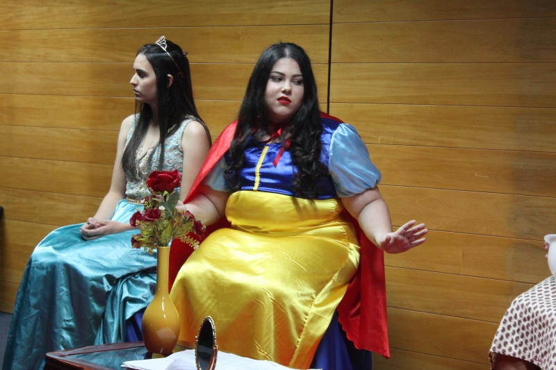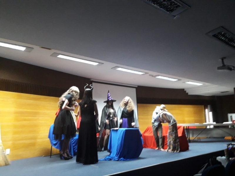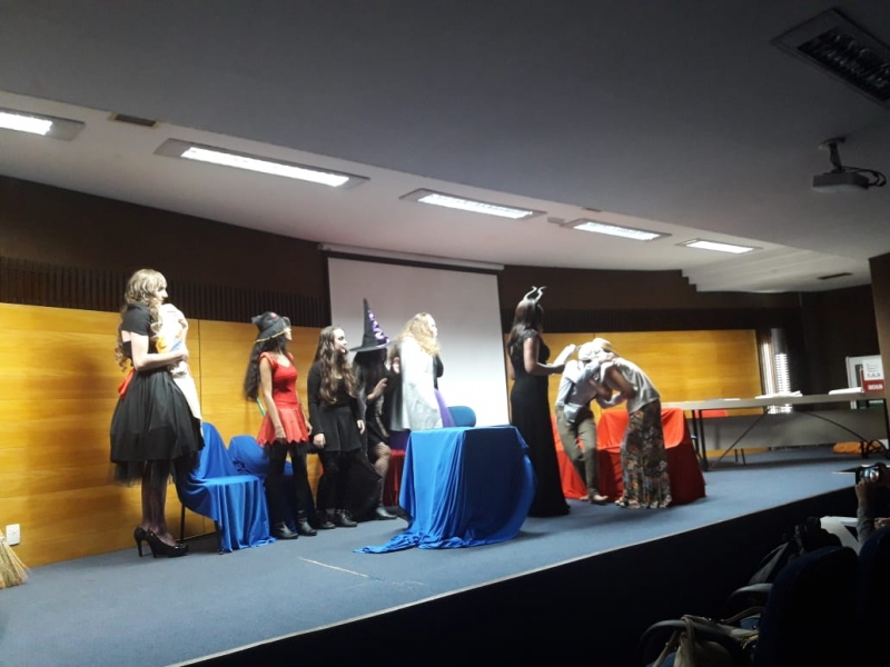 Um clássico da literatura infanto-juvenil virou peça de teatro nas mãos dos acadêmicos do curso de Letras Libras da FAG Toledo. Os acadêmicos do 3º período trabalharam com o livro "O Fantástico Mistério de Feiurinha", obra lançada em 1986 pelo escritor brasileiro Pedro Bandeira. A história foi transformada em peça teatral nas mãos dos estudantes que produziram roupas, cenário, trilhas e realizaram muitos ensaios até o dia da apresentação, realizada no auditório da instituição. "Nós tivemos muito trabalho na preparação, incluímos alguns personagens, ensaiamos muito, mas valeu a pena", comenta a aluna Maria Eduarda de Souza, uma das princesas da história que promove o reencontro entre as princesas dos contos de fada, incluindo a Cinderela, Branca de Neve, Chapeuzinho Vermelho, Rapunzel, Bela Adormecida, Bela Fera e Rosaflor, todas em busca de discutir e investigar o desaparecimento da princesa Feiurinha. "É uma atividade muito interessante, pois faz com que os acadêmicos conheçam a obra e proporciona uma vivência através do teatro, com a incorporação de personagens. O texto reúne muitas qualidades, pois problematiza os contos de fada sem tirar o encantamento destas histórias", comenta a coordenadora do curso, Janice Salvador.