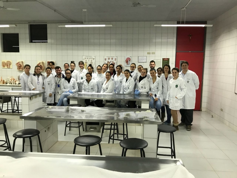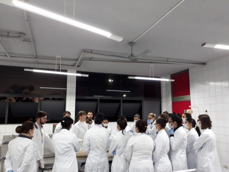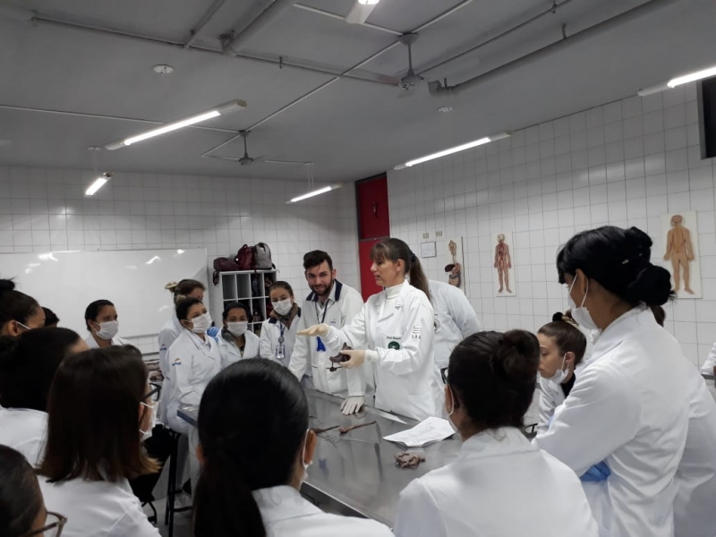 O Centro Universitário FAG recebeu os alunos do Curso Técnico de Enfermagem do SENAC para uma visita técnica aos laboratórios de Anatomia. Na oportunidade, a acadêmica, Elisete Teleginski Dietrichkeit, do 3º período de Enfermagem foi a responsável por compartilhar conhecimento com os alunos, por meio de uma monitoria.