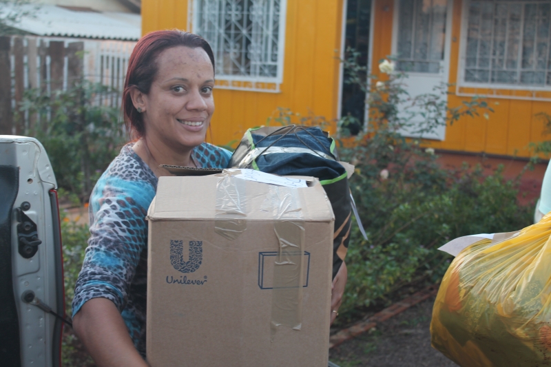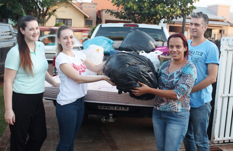 As doações foram entregues ao projeto "Alimente-se de Graça", que atende famílias carentes e moradores de rua da cidade de Toledo. "Nós temos o atendimento na praça, com jantar três vezes por semana. Ali nós encontramos muitas pessoas que precisam de um calçado ou de uma roupa quente e contar com um apoio da sociedade é muito importante", comenta a voluntária Alexandra Clapeiron de Souza. Além da doação de roupas e das refeições servidas na Praça Willy Barth o projeto também arrecada cestas básicas para famílias carentes. "Temos aqui no Coopagro uma central de arrecadação, onde recebemos as roupas, fazemos a triagem e organizamos tudo para doar. Temos uma moradora próxima que recebe os alimentos em casa de outro voluntário que guarda alguns móveis e objetos maiores, que também são doados e encaminhados para famílias carentes", relata Alexandra.