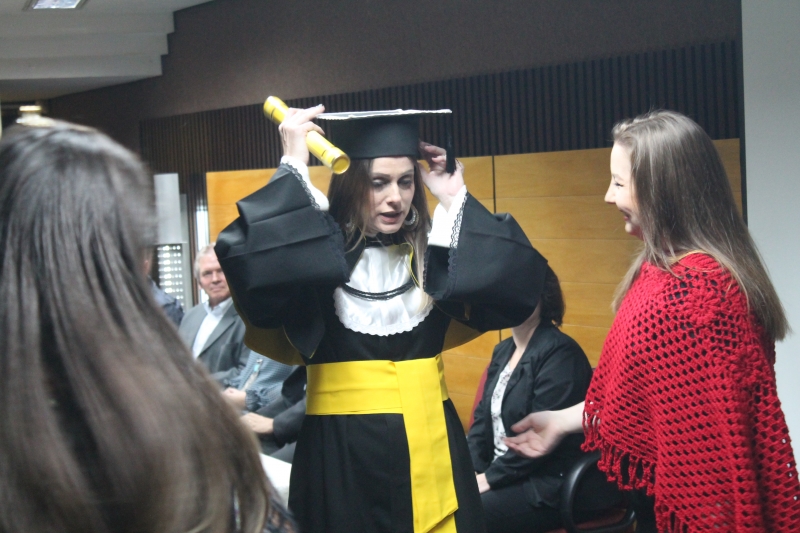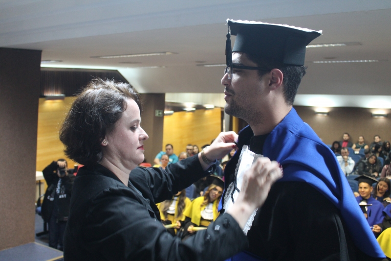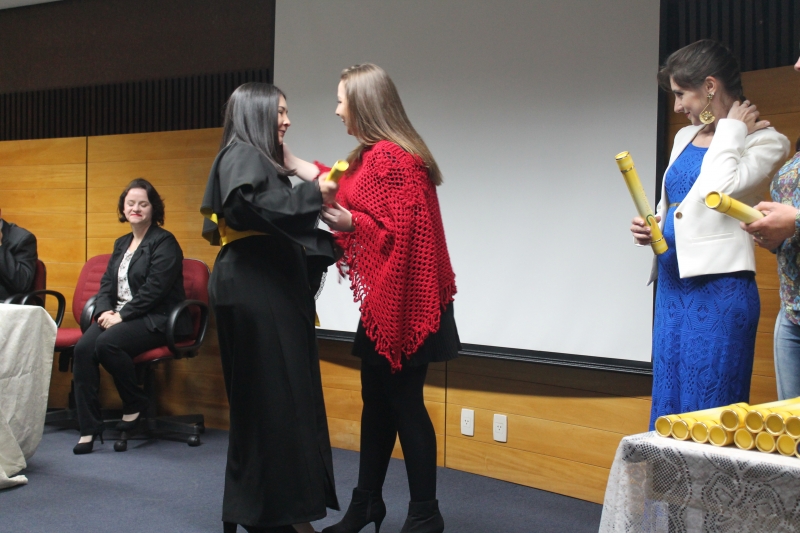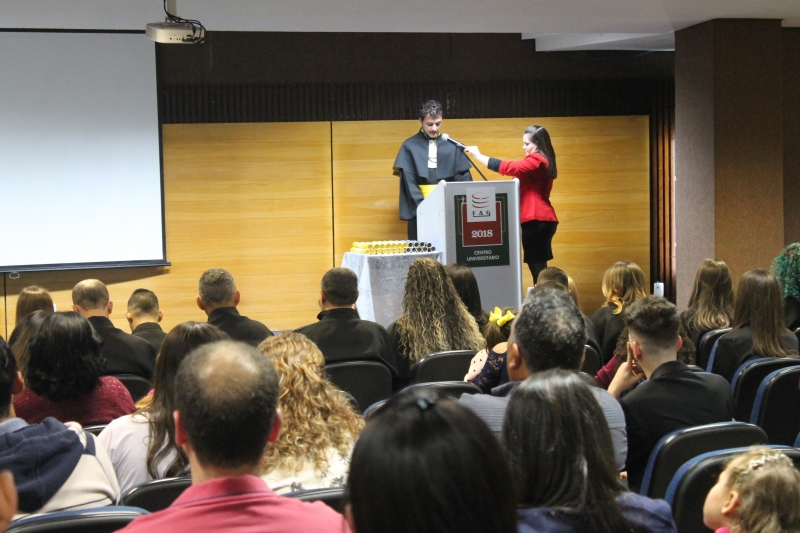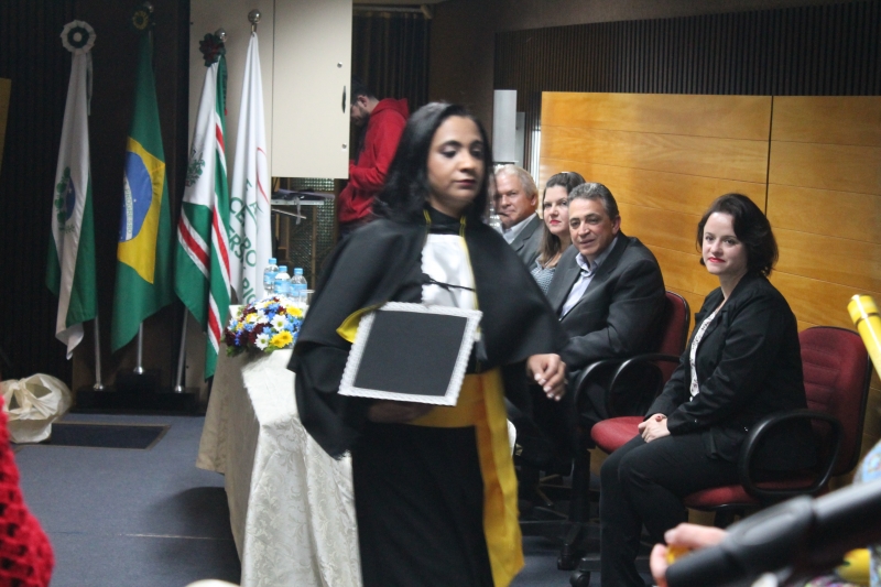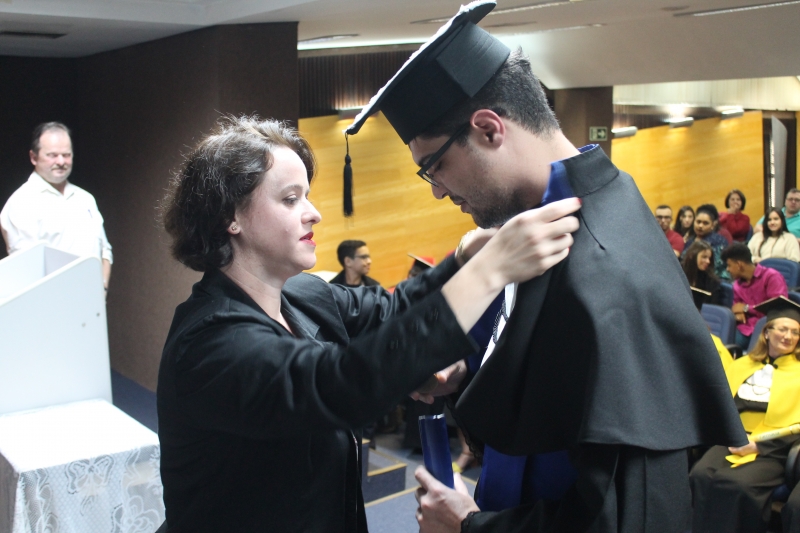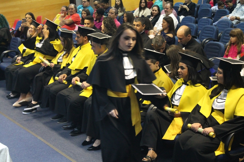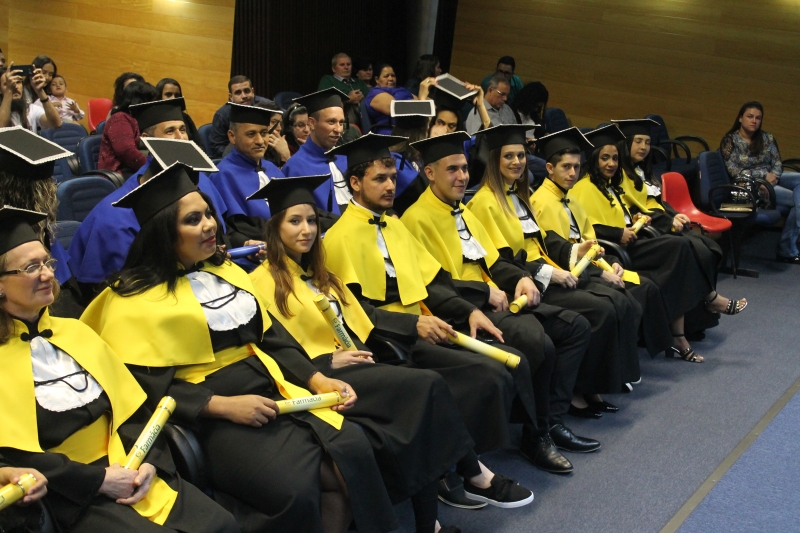 O auditório da FAG Toledo abriu as portas para uma cerimônia mais do que especial na última sexta-feira (13). A instituição cedeu o espaço para que o Colégio Estadual Luiz Augusto Morais Rego realizasse a formatura dos cursos técnicos de Química e Farmácia. O diretor da FAG Toledo, Ildo Bombardelli foi um dos convidados da mesa de honra. Junto dele estava o diretor do colégio, José Carlos Guimarães, a professora Rosemari Zeni representando o Núcleo de Educação além de representantes da equipe pedagógica, APMF e coordenadores dos cursos. Os formandos, 14 do curso técnico de Farmácia e oito do curso técnico em Química receberam o grau, certificados e homenagens de professores e representantes da mesa. Na plateia, pais e familiares acompanharam emocionados a cerimônia. O diretor da FAG os presentes. "A instituição é parceira dos colégios e sempre terá portas abertas para a comunidade. Temos aqui um espaço de integração que deve ser palco de momentos como este em que os estudantes, mesmo os de nível médio e técnico possam acender na vida profissional", comenta.