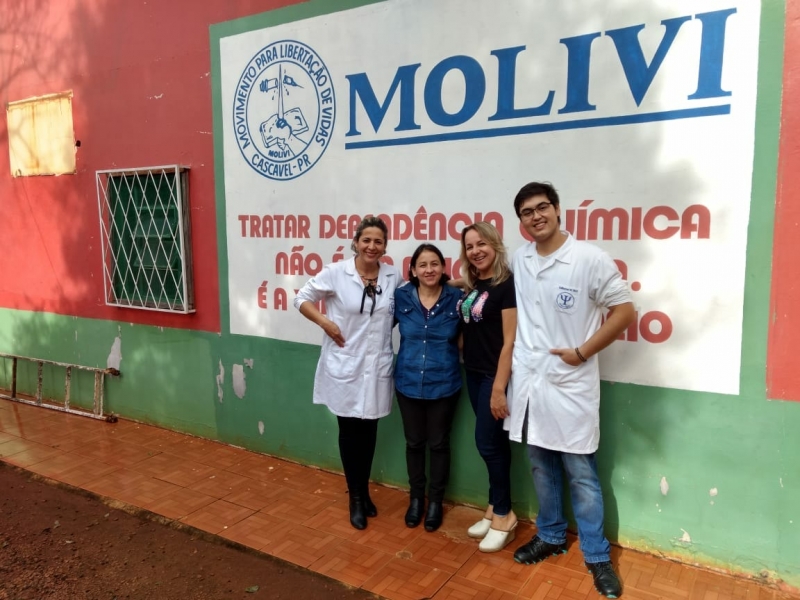 Os acadêmicos do 7º período do curso de Psicologia do Centro Universitário FAG, Guilherme Watanabe Siloti e Marisa Moreira Campos, orientados pela professora, Mirian Alves Carvalho desenvolveram o estágio de psicologia de Grupos na Comunidade Terapêutica MOLIVI - Movimento para Libertação de Vidas de Cascavel, que trabalha no enfrentando a dependência química. Uma série de atividades proporcionou o enriquecimento do currículo acadêmico e melhorias aos participantes do projeto.