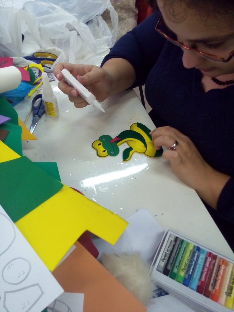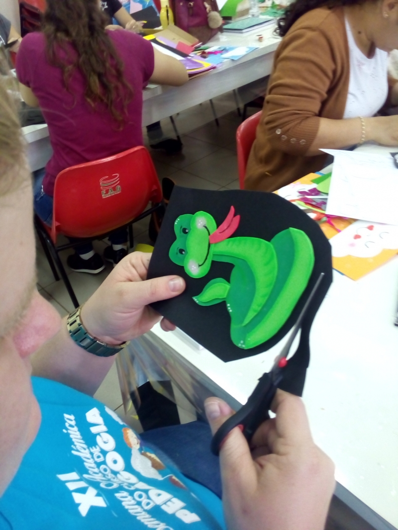 Finalizou recentemente na FAG Toledo um curso sobre o uso pedagógico do e.v.a. ou da espuma vinílica acetinada. A capacitação foi coordenada pela instrutora Maristela Bendo que apresentou aos participantes diversas técnicas e dicas para a confecção de trabalhos com o e.v.a como a produção de jogos pedagógicos para crianças da educação infantil e alfabetização e também sobre a utilização deste material como recurso para a contação de histórias. "Nós tivemos uma procura acima do esperado e as aulas foram muito bem aproveitadas porque boa parte dos participantes eram professores que já atuam na educação infantil e queria aprimorar algumas técnicas para aplicar em sala de aula", relata a instrutora.