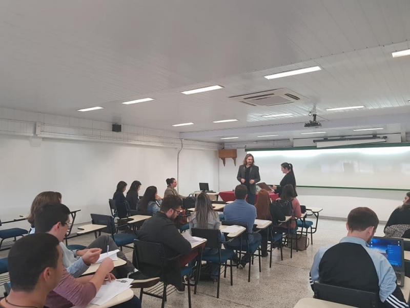 O curso de Direito da FAG Toledo realizou recentemente o Seminário de Prática com acadêmicos do curso. O Seminário é uma etapa para a aprovação no estágio supervisionado que o acadêmico realiza no Núcleo de Práticas Jurídicas (NPJ). Ao final do semestre os alunos expõem para a comunidade acadêmica os casos mais desafiadores para eles dentro do NPJ. A apresentação é feita para uma banca de docentes, presidida pelo professor Marco Antonio Batistella, coordenador do NPJ. A banca avalia a postura da apresentação do aluno, a capacidade de se expressar oralmente e de responder à arguição sobre os casos. "Os alunos precisam conhecer os casos que estão expondo, e explicar todo o encaminhamento jurídico que foi dado", explica a coordenadora de Direito Camila Milazzotto Ricci, ressaltando que este é um momento onde também são discutidos os principais projetos que envolvem o núcleo. "Os convênios que nós temos também entram na pauta e aí estão o Mutirão do Migrante e o projeto de Assistência Farmacêutica que são avaliados e discutidos. É um momento muito rico de troca de experiências e, sobretudo, da tomada de consciência de como o trabalho realizado pelo NPJ é relevante para a sociedade", finaliza.
