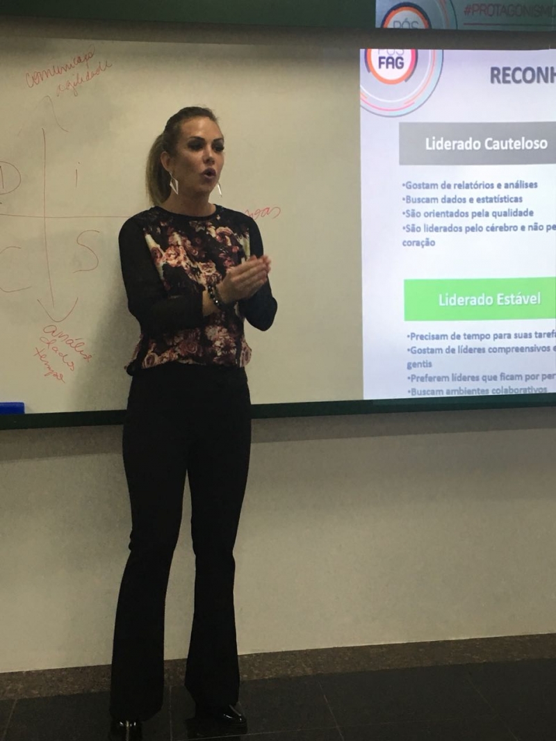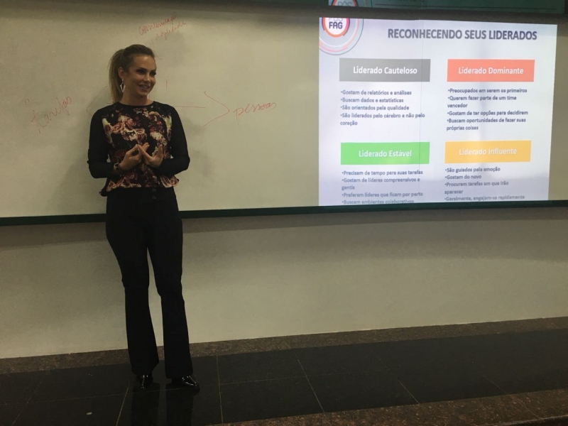 De acordo com ela, o módulo trouxe a liderança não com técnicas de gestão, mas com o poder de influência. "Eu trouxe para os alunos quais são os comportamentos mais simples de se fazer uma leitura no ambiente de trabalho a partir de algumas atitudes da pessoa. É claro que não podemos rotular o ser humano, mas é muito natural filtrar por diferenças para saber lidar melhor com o outro, como por exemplo, se a pessoa é mais ligada a pessoas ou a tarefas. É aprender a falar com o outro do jeito que ele gostaria que falassem com ele", expõe.