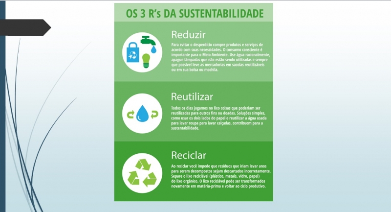 Inicialmente o projeto deverá envolver os setores administrativos da instituição. "Estamos lançando esta ideia que aos poucos deverá abranger também as rotinas dos professores, coordenadores e dos nossos alunos. Todos podem contribuir para termos um mundo menos poluído e mais preservado. O essencial é que cada um repense as próprias atitudes e comece a fazer a sua parte", comenta Maristela.
