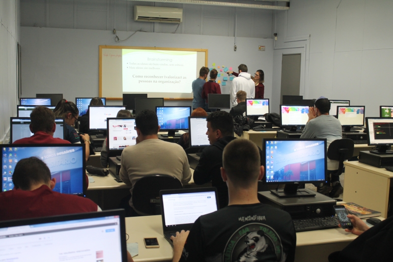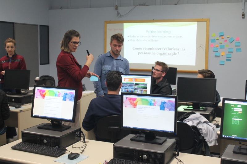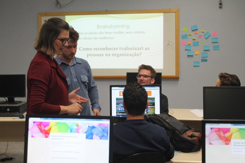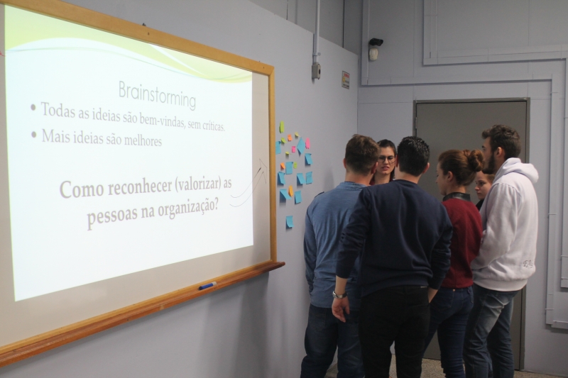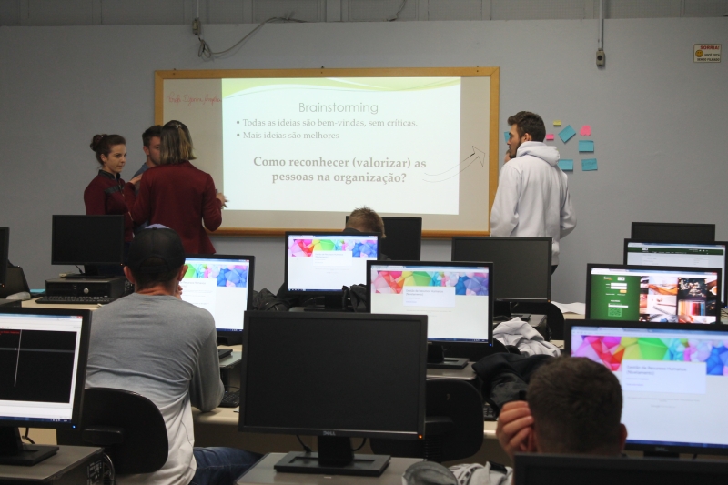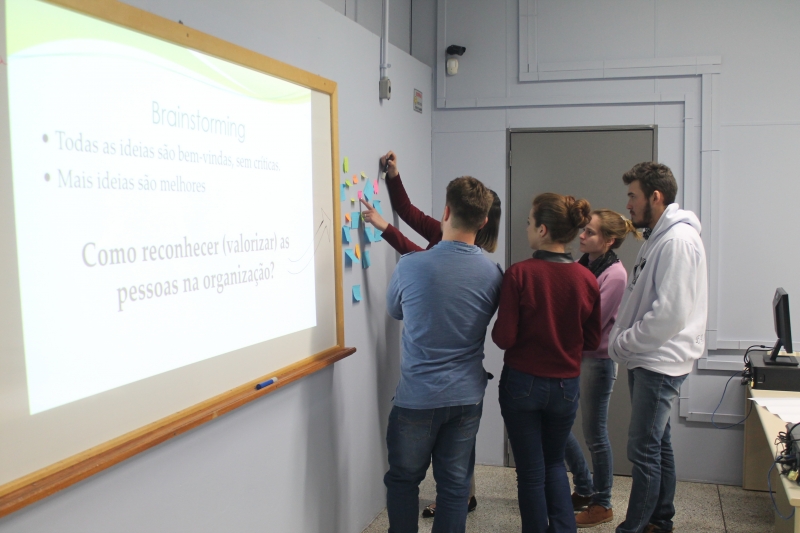 Os acadêmicos do 4º período do curso de Administração da FAG Toledo participaram de uma aula invertida com a professora Djeimi Neske durante a disciplina de "Gestão de RH". Os estudantes foram até o Laboratório III do Bloco II e realizaram uma oficina sobre valorização e reconhecimento de pessoas nas organizações. "Fizemos um brainstorm, de onde surgiram diversas sugestões de ações que podem, a curto e médio prazo, promover a valorização do profissional por parte da empresa e do gestor", explica a docente.