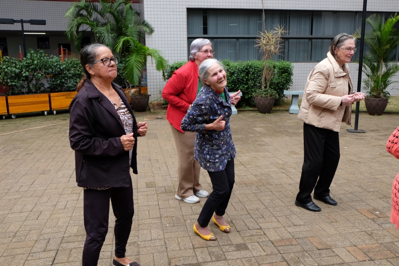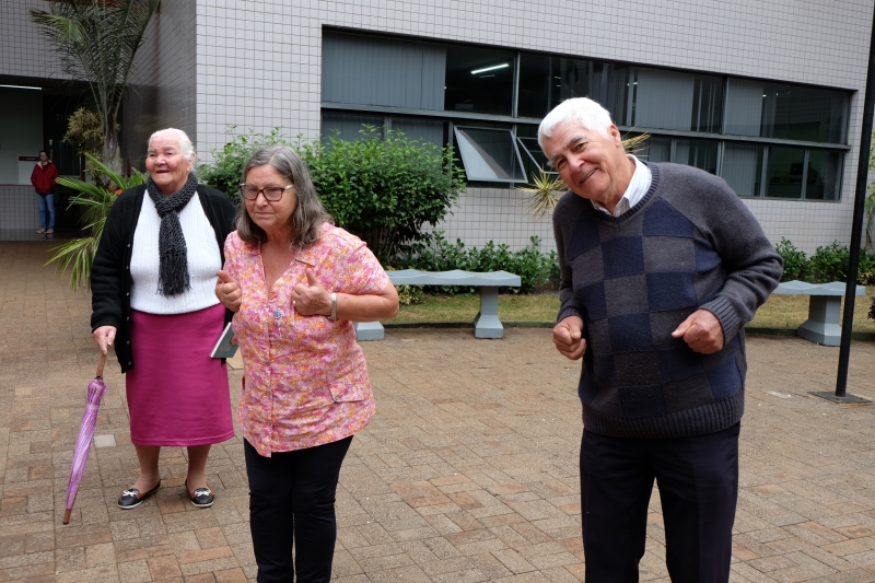Para Evani Fernades, participar do grupo faz com que o tempo seja proveitoso. Ela e o marido distraem-se e ocupam a cabeça. As atividades iniciaram com um bate-papo no auditório do bloco 2. Os encontros, além de oferecer amparo para os desafios enfrentados na terceira idade, trazem para o grupo momentos de descontração, onde todos participam e se divertem. Assuntos como perdão, fé, amor e paciência são trabalhados, a fim de promover a compreensão e o entendimento de como driblar as dificuldades do dia a dia. Posteriormente, o grupo foi encaminhado ao saguão, para participar de atividades dinâmicas, com músicas e danças.