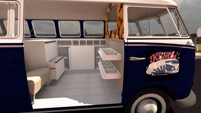 Acadêmicos do 3º período do curso de Design de Interiores da Faculdade Dom Bosco passaram por um desafio diferente: projetaram uma loja de pães sobre quatro rodas. A ideia da atividade surgiu a partir da necessidade do casal, Fernanda Toigo e Ruy Felipe, para a execução de um projeto que habilitasse a Kombi deles para as vendas da produção de pães artesanais. Foi quando a coordenadora do curso de Design de Interiores, Marieli Gurgacz Moreira, propôs a eles a utilização de um projeto real na disciplina de Projetos de Interiores II.
