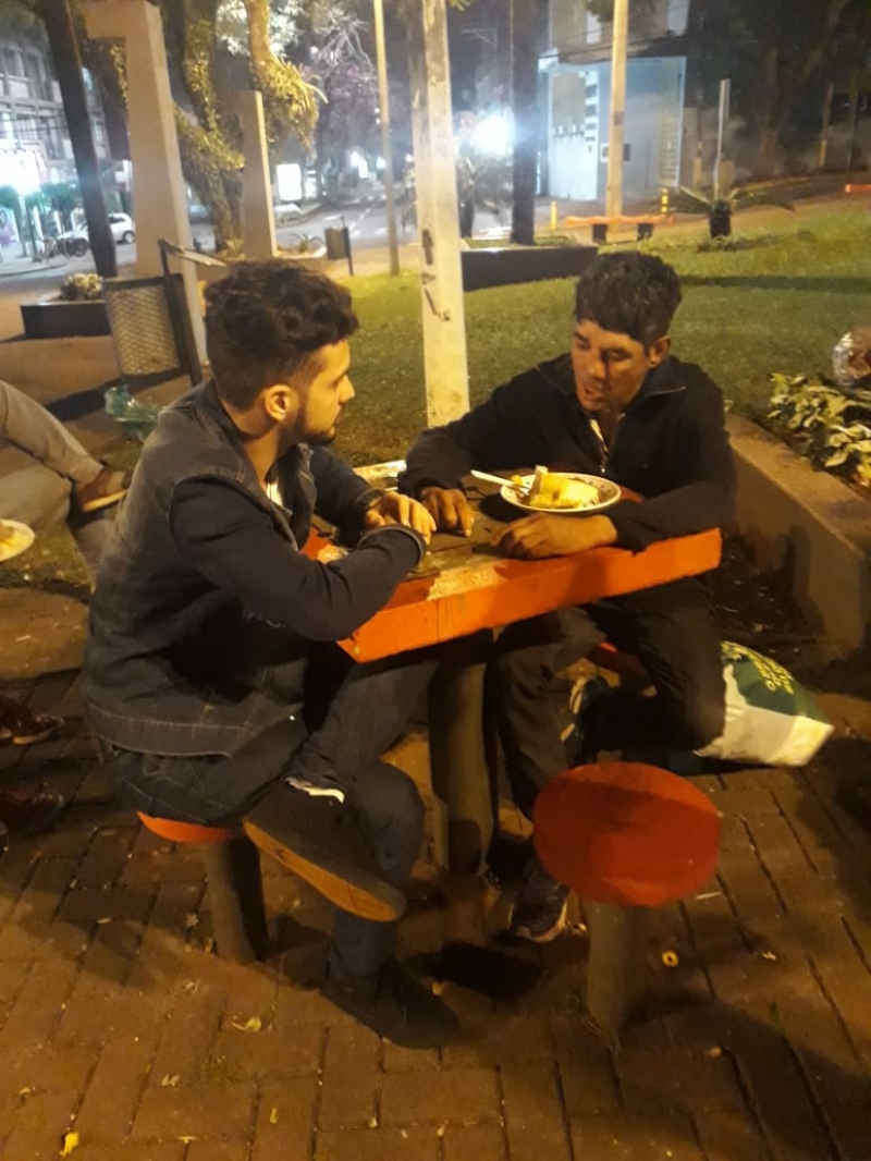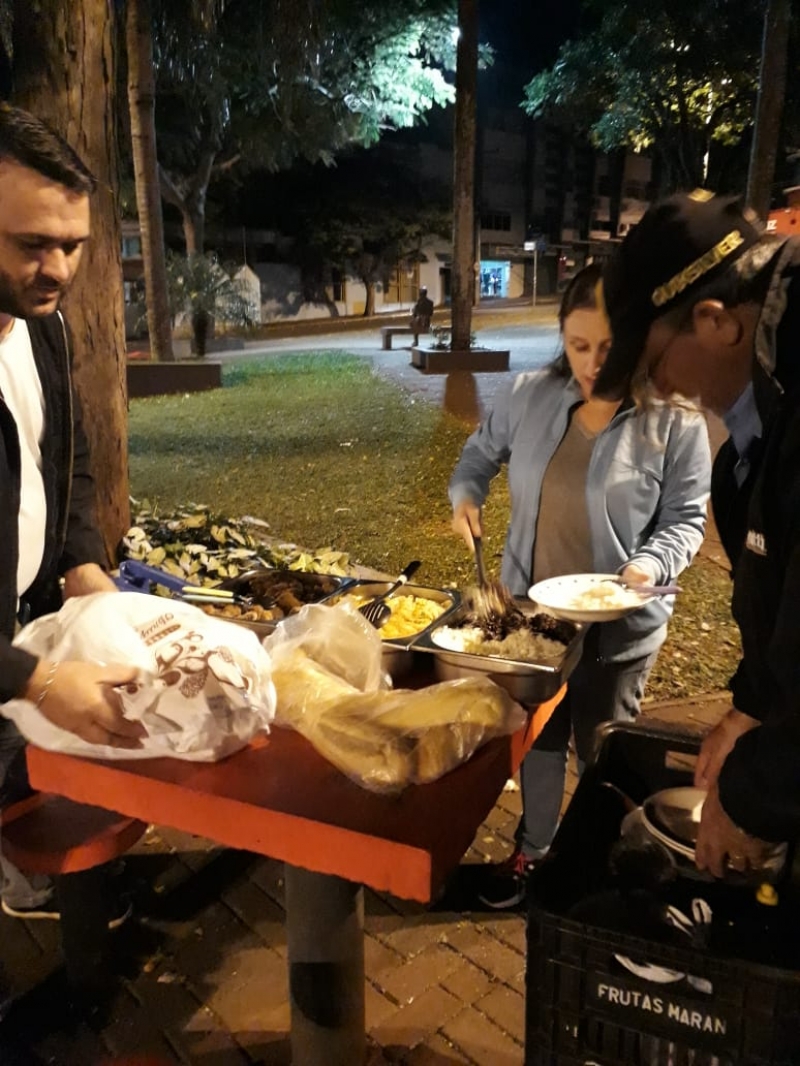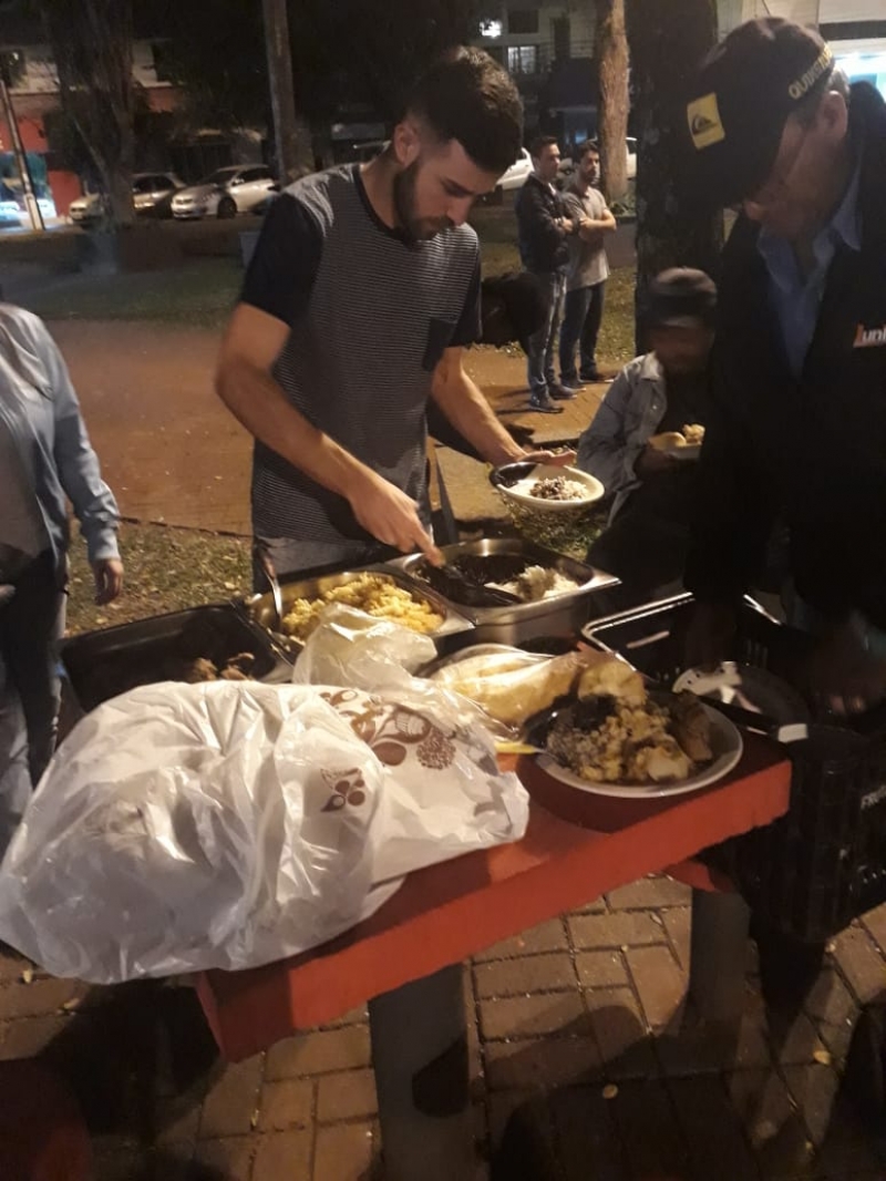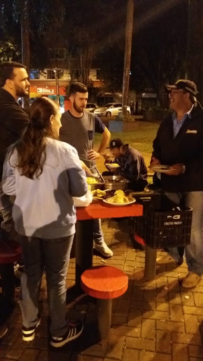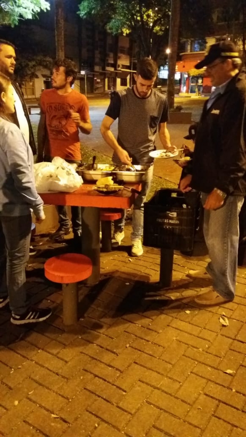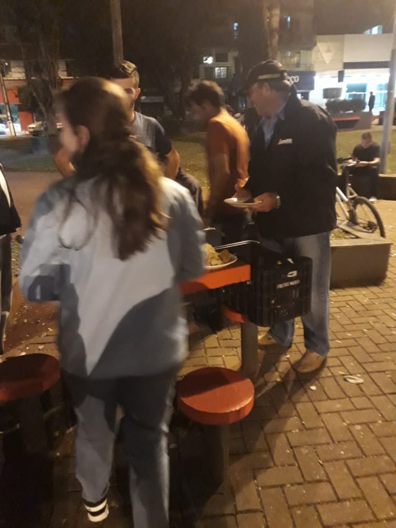 Estudantes arrecadaram donativos e participaram de um dos jantares realizados na Praça Willy Barth