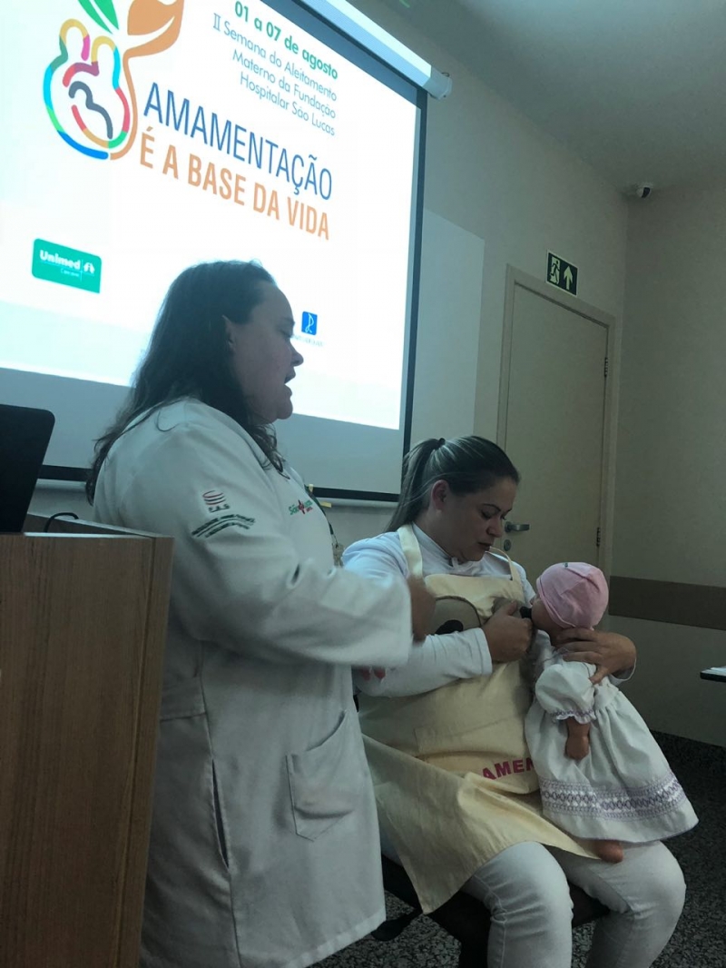 Acadêmicos, professores e profissionais da saúde participaram da II Semana do Aleitamento da Fundação Hospitalar São Lucas. O evento começou na quarta (01) e encerrou ontem (07), e foi realizado simultaneamente à Semana Mundial do Aleitamento Materno. Diferentes atividades foram executadas com informações relevantes, quebra de mitos e orientações a respeito da amamentação.