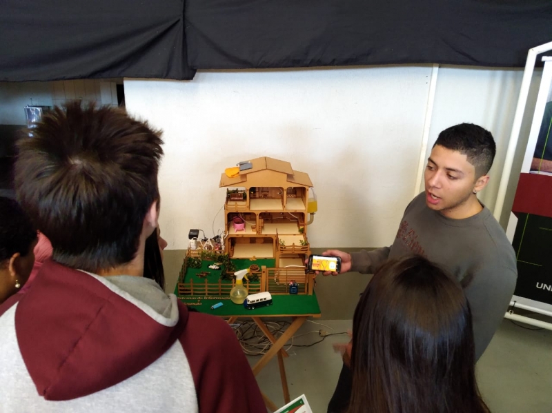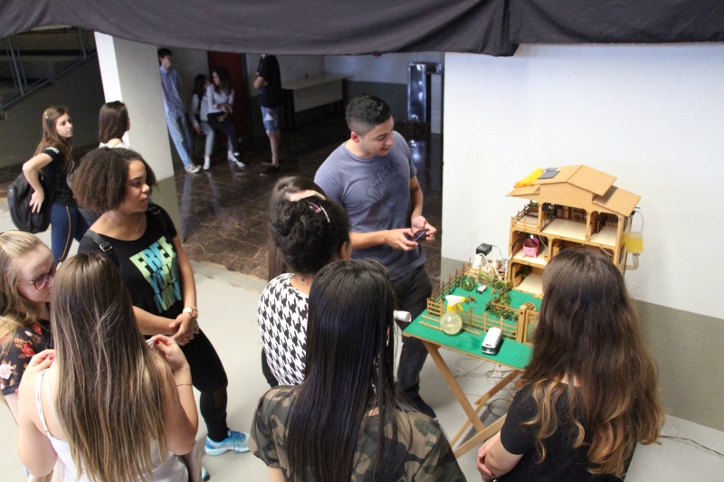 Os acadêmicos da FAG Toledo fizeram às vezes de anfitriões durante a visitação que os estudantes do ensino médio de colégios de Toledo e região fizeram na instituição. O objetivo de instalar estandes dos cursos dentro do ginásio de esportes era fazer com que os alunos que passassem pelo local pudessem, através da visitação estande por estande, conhecer como a instituição funciona e o que disponibiliza para os acadêmicos. Nada melhor do que eles próprios para falar das experiências vivenciadas dentro da universidade, enquanto acadêmicos. "Foi uma experiência muito boa e muito gratificante poder representar o curso em que eu estudo e saber que podemos inspirar outros estudantes que estão escolhendo o que querem cursar", comenta o estudante Henrique Bruxel do 2º período de Gestão do Agronegócio. Os estudantes de Administração, Ciências Contábeis e dos cursos de Gestão apresentaram aos futuros acadêmicos o que eles aprendem nas disciplinas e projetos institucionais e como percebem as carreiras de cada área. Os acadêmicos de Sistemas de Informação apresentaram projetos práticos do curso, com destaque para o de robótica, um dos pontos da exposição que mais atraiu olhares dos visitantes. Assim como a maquete da casa automatizada que também chamou atenção dos jovens. Os acadêmicos do curso de Letras Língua Portuguesa e Libras fizeram várias interações com os visitantes. Contação de histórias com indumentária de personagens literários, espaços para tirar foto e explicações sobre as rotinas do curso e do mercado de trabalho da área. As acadêmicas de Pedagogia também participaram das explanações no estande do curso. As estudantes explicaram aos visitantes sobre os itens expostos, muitos deles confeccionados em sala de aula, durante atividades práticas. As alunas também explanaram sobre os laboratórios e brinquedoteca, usados para atividades práticas de Pedagogia. "Os nossos alunos são a nossa melhor propaganda. São apaixonados por seus cursos, se envolvem em todas as atividades propostas e em uma oportunidade como a Feira das Profissões eles se sentem orgulhosos em representar a instituição", comenta o diretor da FAG Toledo Ildo Bombardelli.