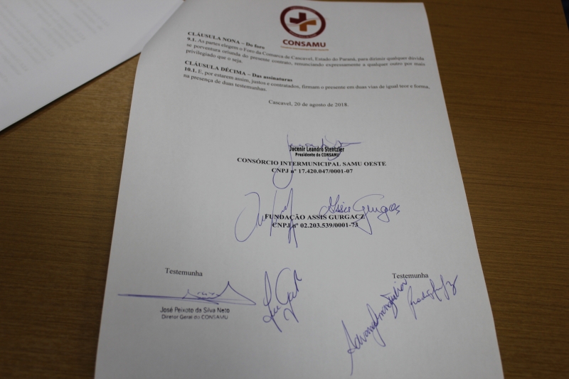 Participaram da assinatura o Reitor, Assis Gurgacz; a Pró-reitora Administrativa, Jaqueline Gurgacz Ferreira; o Pró-reitor Acadêmico, Afonso Cavalheiro Neto; O Vice-reitor, Sérgio De Angelis; o Presidente do Consamu e Prefeito de Palotina, Jucenir Leandro Stentzler; o Diretor Geral do Consórcio, José Peixoto da Silva Neto; o Diretor Técnico e professor do curso de Medicina, Rodrigo Nicácio; o Coordenador de Medicina, Rui Almeida; o Coordenador Adjunto do curso, José Ricardo Paintner; o Assessor Jurídico da FAG, Charles Lustosa; do Presidente do Centro Acadêmico de Medicina, Renan Moreira; da Coordenadora dos Estágios do Centro Acadêmico, Adriana Fernandes; além de servidores do Consórcio - alguns egressos do Centro FAG.