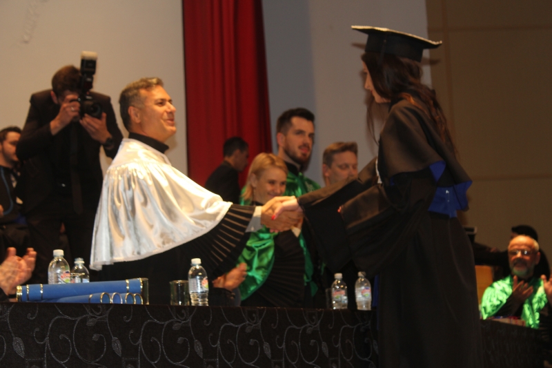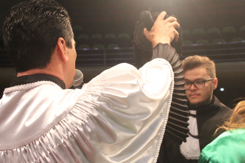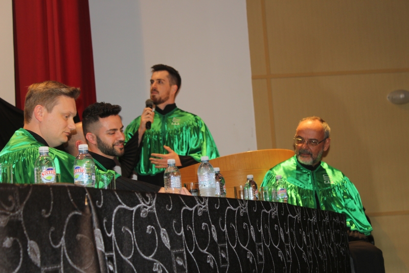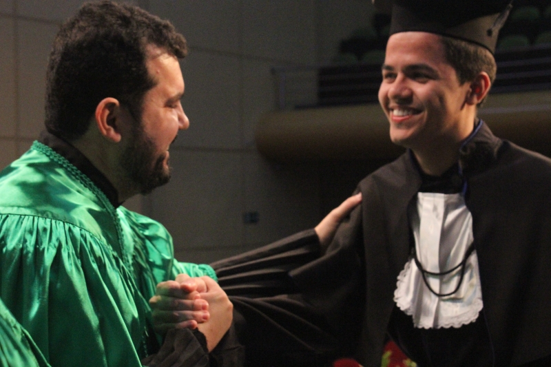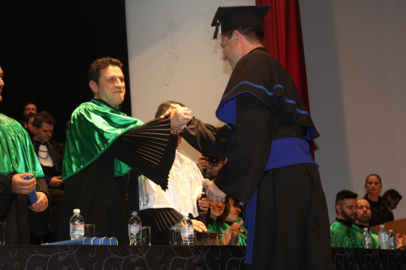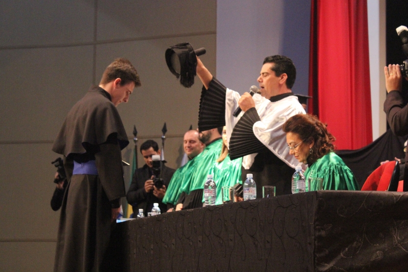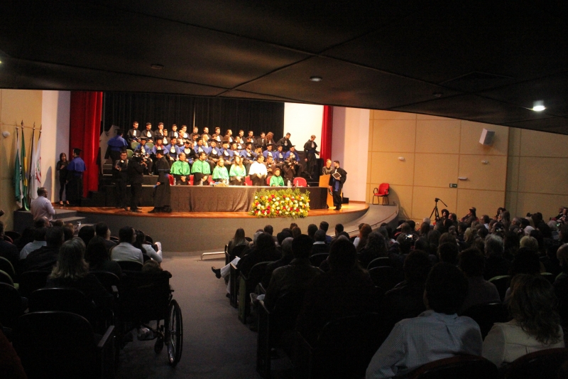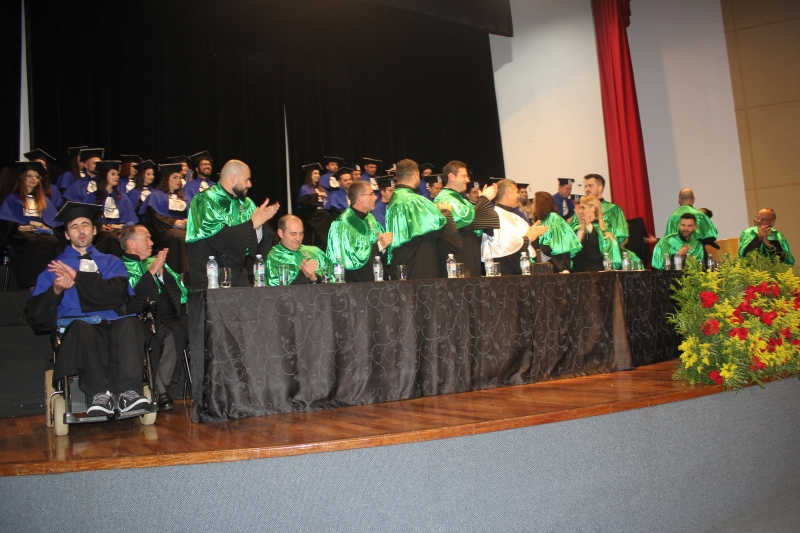 A mesa de honra foi composta pela Direção, coordenadores, professores homenageados e pela Secretária Acadêmica. O evento solene configura-se como um momento de comemoração, não apenas para os formandos, mas, certamente, para todos aqueles que contribuíram durante o seu desenvolvimento acadêmico, aqueles que os instigaram e os compreenderam durante todo o complexo processo de formação - seus familiares, seus professores e toda a comunidade acadêmica.