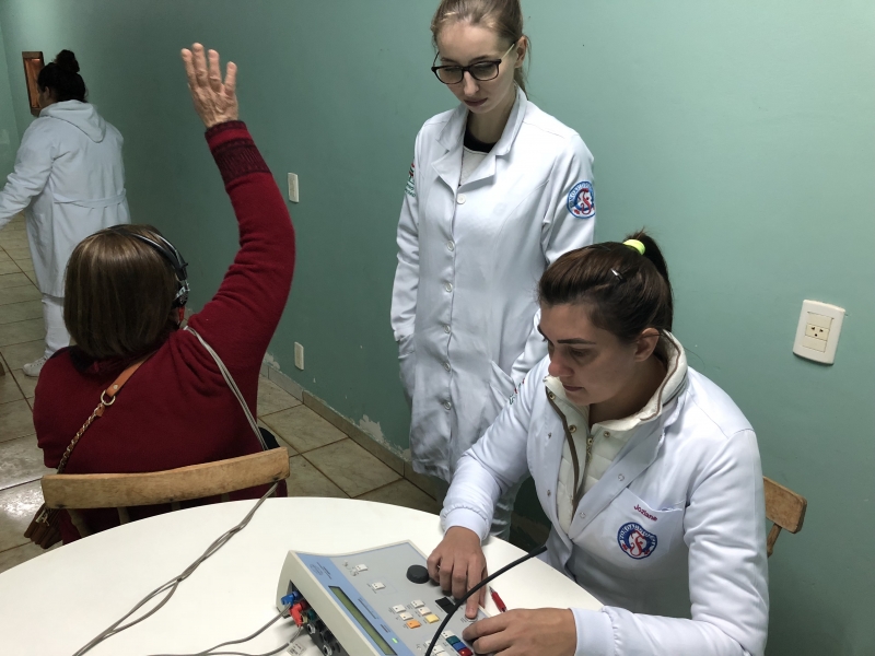 Proporcionar atendimentos na área da saúde e atividades de cunho social e cultural a partir do envolvimento dos diversos parceiros foi o objetivo do curso de Fonoaudiologia do Centro Universitário FAG na 4ª edição do evento Felicidade do Idoso. A FAG participou com diversos cursos, e a graduação em Fonoaudiologia foi responsável pela avaliação da audição dos idosos participantes do evento.