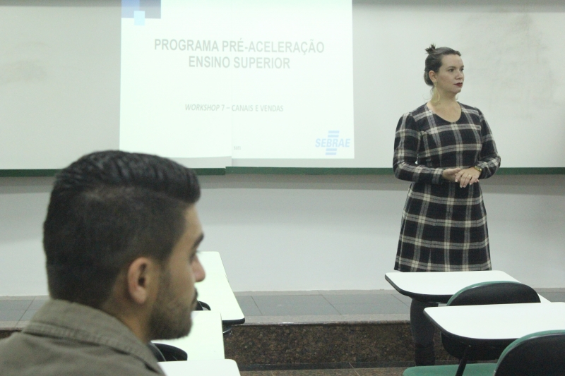 A consultora da WB Consultoria Empresarial, SEBRAE-PR, trabalhou com os alunos sobre Canais de Venda