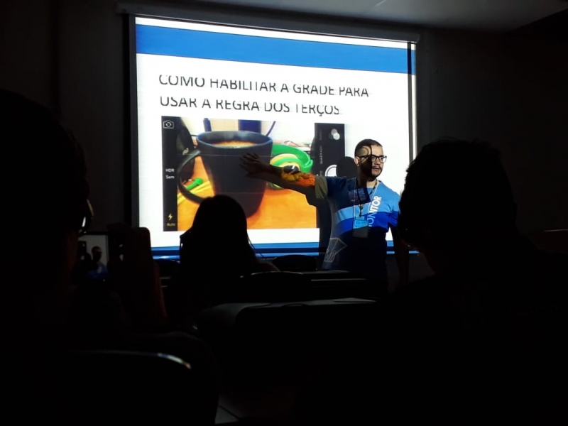29 alunos e professores participaram da oficina sobre Fotografia para Celular. A prática foi realizada no Seminário de Pesquisa, Inovação e Extensão do Instituto. "O resultado foi bastante positivo, os alunos e professores mostraram uma diferença grande no antes e depois do curso, ensinei a eles questões sobre composição, luz e foco", explica Mateus.