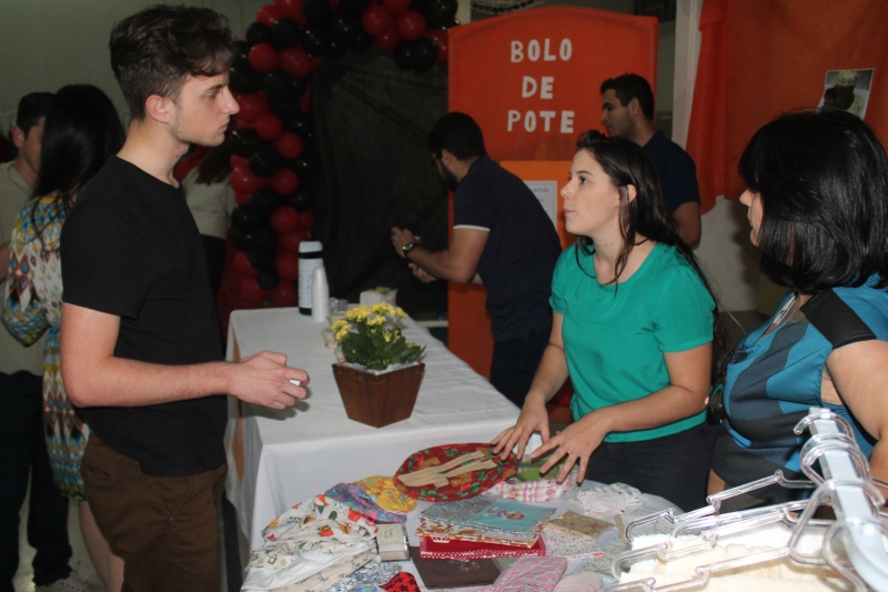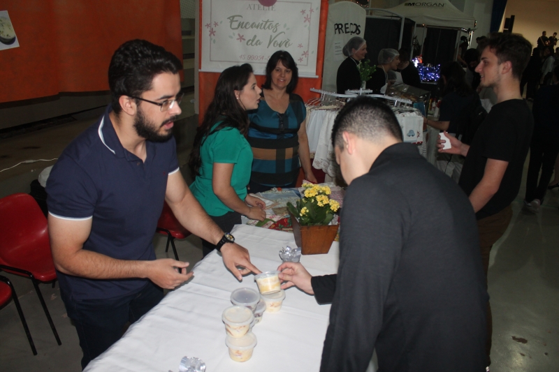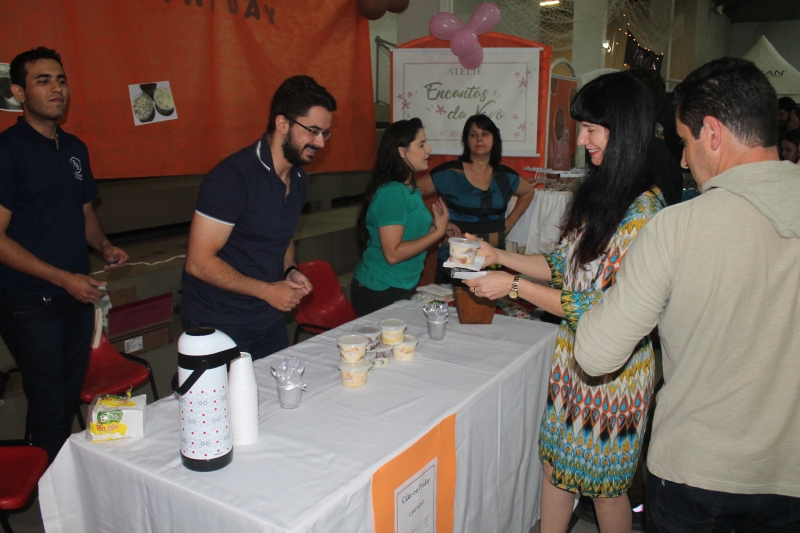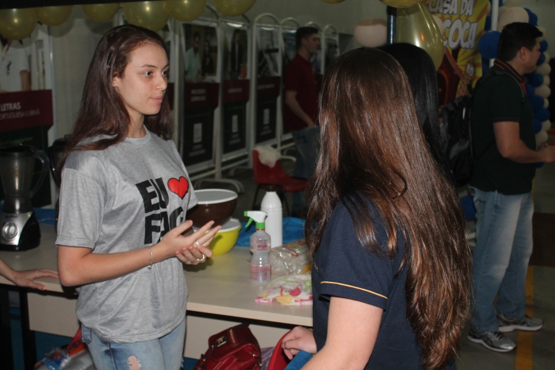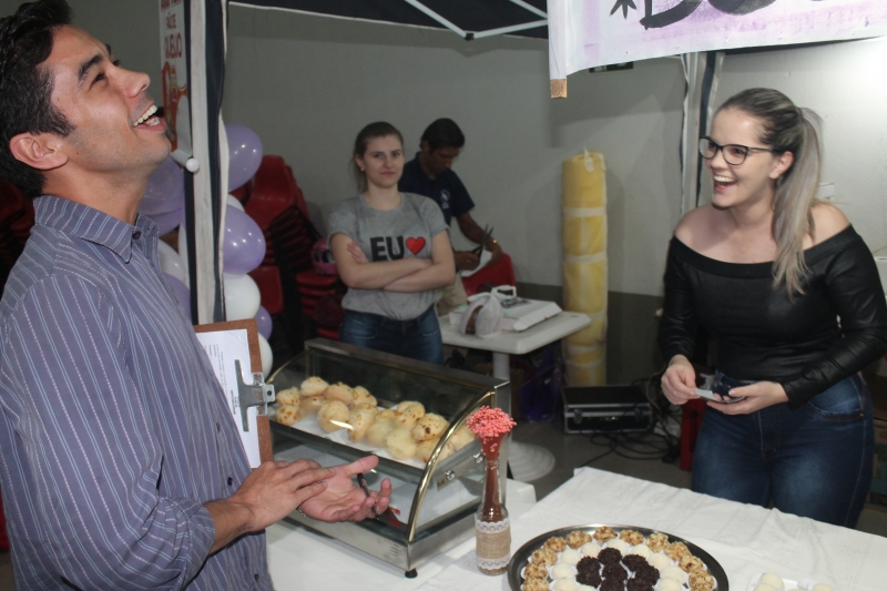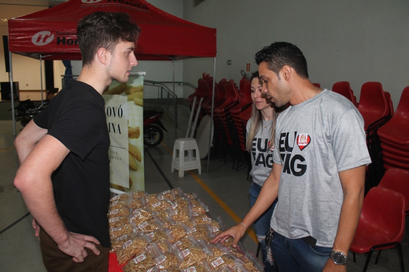 Ideias de negócios para todos os públicos, gostos, demandas e paladares. Assim foi a segunda edição da Feira do Empreendedorismo dos cursos de Gestão de Recursos Humanos, Gestão Financeira e Processos Gerenciais da FAG Toledo, realizada na última sexta-feira (14). Onze estantes espalhados pelo ginásio chamaram atraíram a atenção de acadêmicos, professores e técnicos da instituição. "Nós criamos um produto que já existe no mercado, que é o fondue, mas com algumas diferenças em termos de sabores e também com um nome apelativo para ser também uma boa estratégia na hora de atrair público", relata o acadêmico Luiz Hammer Jam do curso de Processos Gerenciais. O grupo dele criou a loja "La Casa de Fondue". Entre os projetos gastronômicos também se destacam as barracas de doces, salgados, assados, bolachas, esfiha aberta e mini pizza. O grupo da aluna Nadine Mafra de Processos Gerenciais apresentou uma proposta para acompanhar a comilança. "Nós fizemos uma banca de drinks, com várias possibilidades de sabores e misturas, usando frutas frescas e produtos de qualidade para garantir um produto final atraente e saboroso", comenta, ressaltando que os itens vendidos não possuíam álcool na composição.