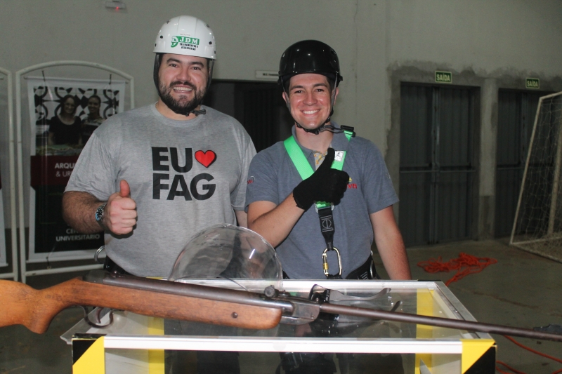 Outro grupo que ganhou centenas de visitantes no estande foi o do acadêmico José Machado do curso de Gestão de Recursos Humanos. Eles apresentaram itens de segurança como a corda para trabalhos em plano elevado e óculos de segurança. "Se a pessoas estiver com óculos de segurança que custa apenas 10 reais ele já garante a saúde dos olhos contra impactos. São investimentos baixos, mas importantes para o empresário e para o trabalhador", comenta o estudante.