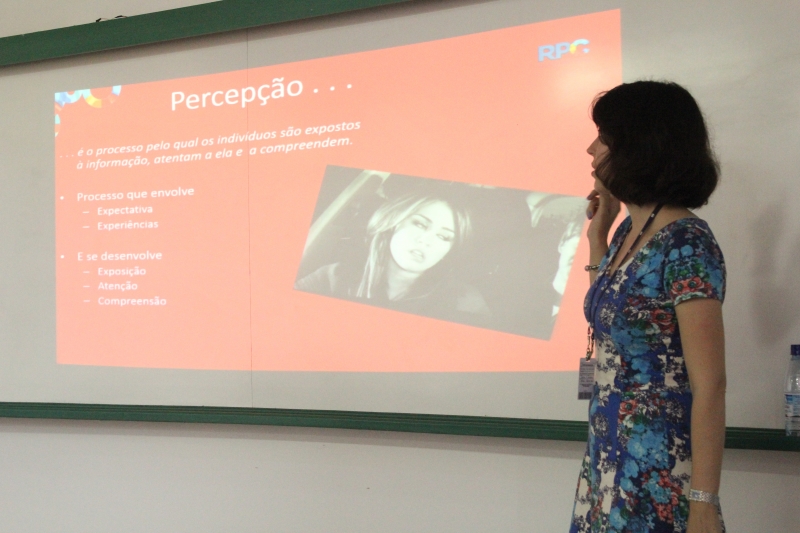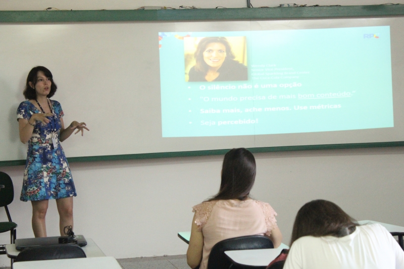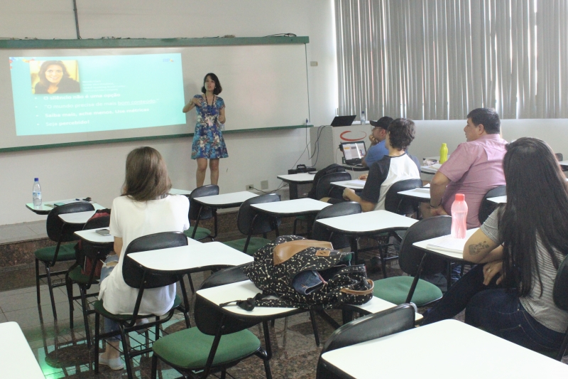A professora de Publicidade e Propaganda do Centro FAG, Alexssandra Aliny Quadros, trouxe para os participantes conceitos de marketing na televisão