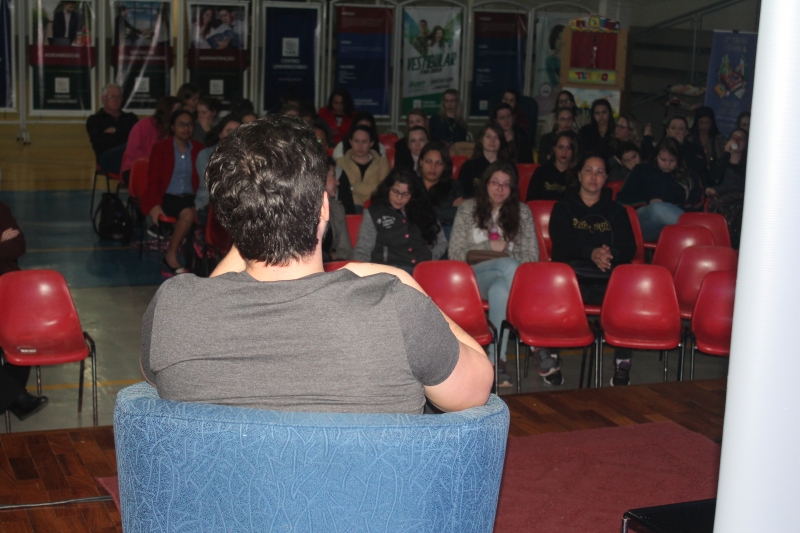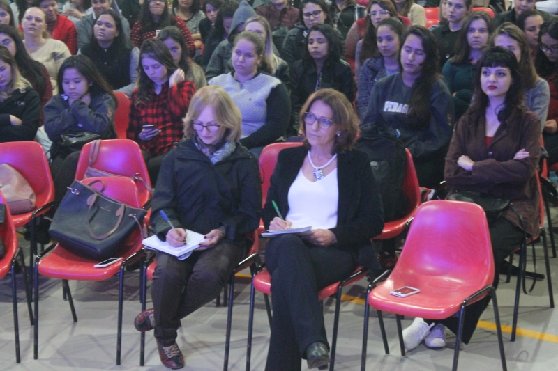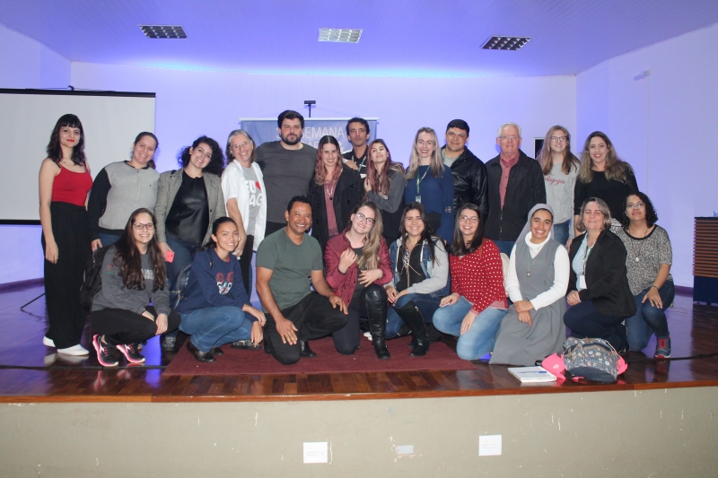 O egresso de Pedagogia Claudemar dos Santos acompanhou a palestra da primeira fila. "Eu sempre acompanho os eventos que a FAG Toledo realiza e sempre que posso estou participando, pois são momentos como o de hoje, instrutivos e enriquecedores para quem é da área da educação", comenta. A Academia de Letras de Toledo foi representada no evento por duas integrantes: Lucrécia e Ana Welter. Ana é destaque da Semana Literária com a inclusão de um de seus textos na coletânea de contos infantis do Sesc. "Fiz uma história com personagens paranaenses, sobre a Estrada da Graciosa e com a ideia de atrair os pequenos para a leitura. Se ensinamos sobre a importância da leitura quando jovens, nós teremos mais adultos leitores no futuro", comenta. A coordenadora Pedagógica da FAG Toledo e coordenadora do curso de Letras Libras, Janice Salvador também acompanhou a palestra do escritor. "Foi uma palestra muito enriquecedora e inspiradora também. Foi muito bom ouvi-lo falar da literatura, de seu trabalho feito com tanta sensibilidade". Além de integrar a Semana Literária, o evento também é parte do projeto integralizador do curso de Pedagogia. "Esta parceria com o Sesc nos possibilita receber escritores que normalmente não circulam pelo interior, pela nossa região, por isto nós transformamos o evento em nosso projeto integralizador para que nossos alunos participem e agreguem o que aprenderam ao conteúdo em sala de aula", explica a coordenadora do curso Doralice Pizzo Diniz.