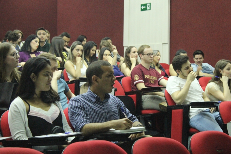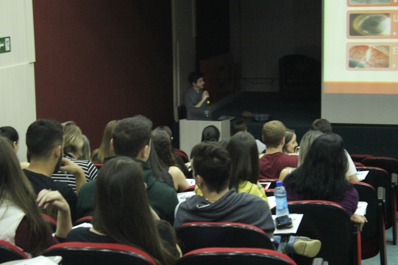 O evento aconteceu na sexta (21) e no sábado (22), no Auditório do Bloco IV, com palestras sobre diferentes temas relacionados à área. O Dr. Gabriel Sarolli foi quem fez a abertura da atividade e falou sobre "Principais Urgências em Oftalmologia". "Eu trouxe descrições do que seriam essas urgências e como tratar, ou seja, manejar determinadas situações. A inciativa do Simpósio é ótima, pois o contato que eles têm nessa área é pouco. Por mais que não serão oftalmologistas, terá casos em que precisarão saber como lidar", declara.