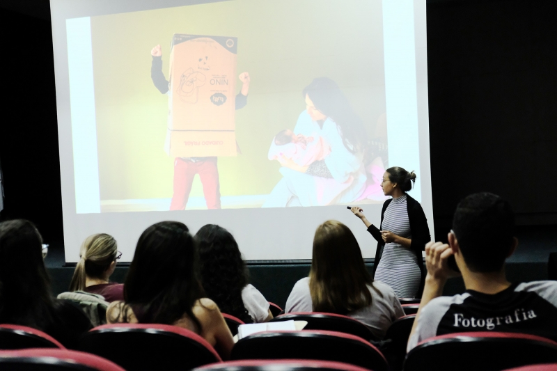 Os profissionais trabalharam com os acadêmicos as técnicas sobre fotografar criança e família e casamento
