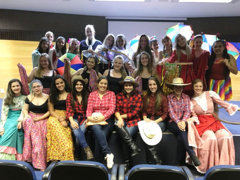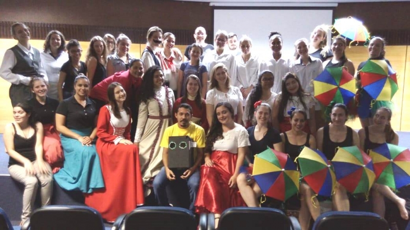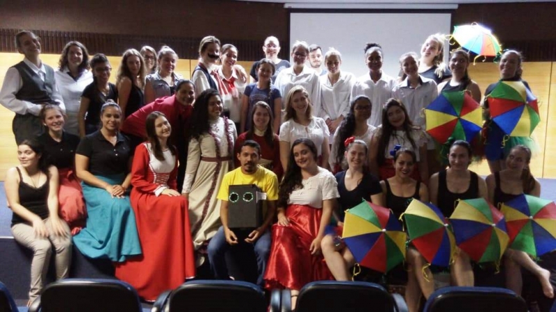 Acadêmicos do 2º e 4º períodos do curso de Pedagogia da FAG Toledo fecharam o terceiro bimestre com uma atividade especial de danças folclóricas em uma noite de apresentações realizadas no auditório da instituição. O evento foi organizado pela professora Paula Bugs na disciplina de Educação Física e suas metodologias de ensino. "O objetivo desta atividade proposta para as turmas foi de fazer um resgate das danças folclóricas, de diferentes estados, mostrando um pouco da diversidade cultural do Brasil", explica, complementando sobre a importância da música para o processo de educação. "Desde que a humanidade existe, a dança existe. A dança é vida, movimento, cultura que reproduz a memória e as características de um povo, por isto é tão importante", comenta.
