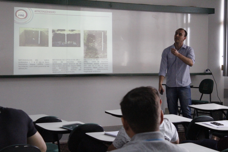O Programa de Pós-Graduação do Centro Universitário FAG iniciou nessa semana duas novas turmas nos cursos de Comércio Exterior e Fertilidade do Solo. O agrônomo, Dr. Martios Ecco, ministrou o primeiro módulo na especialização de Fertilidade do Solo.