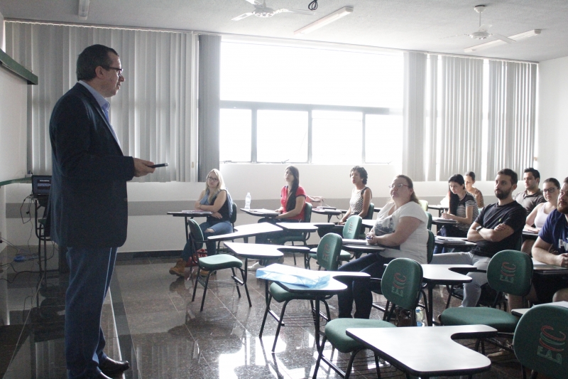 Já o curso de Comércio Exterior recebeu o economista, Dr. Jandir Ferreira de Lima. "Essa é a terceira vez que venho pra FAG ministrar aula na Pós. E o que percebemos das turmas é que são bem profissionais e que buscam por informações e estudos de caso. São profissionais focados na prática. Sendo assim é necessário que trabalhamos com eles mais a prática", explica.